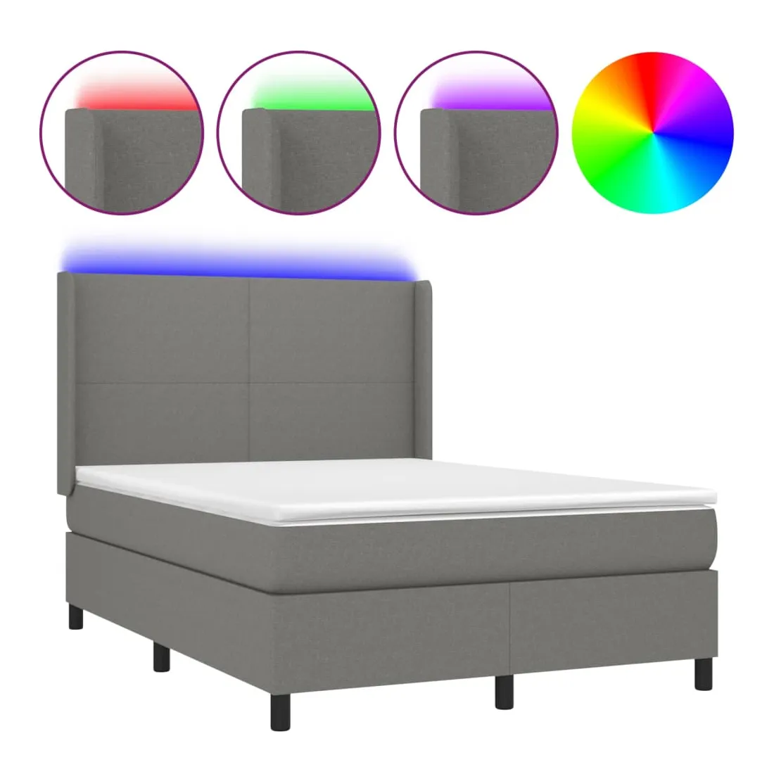 Utilisez ce sommier tapissier avec matelas et LED pour profiter d'un sommeil réparateur ! C'est le point central de votre chambre à coucher. Tissu durable : le tissu présente un aspect simple et épuré, et il est respirant et durable.Tête de lit pratique : la tête de lit est réglable en hauteur selon vos préférences. La tête de lit vous offre un excellent soutien du dos lorsque vous êtes assis dans votre lit pour lire ou regarder la télévision.Bande LED colorée : apportez de l'éclairage dans l'obscurité avec des lumières LED colorées !Matelas à ressorts ensachés : le ressort ensaché individuel intégré est connu pour sa très haute qualité tout en assurant un haut niveau de durabilité et d'adaptabilité. Il peut absorber efficacement le bruit et les chocs causés par les sauts et les rotations.Protège-matelas doux pour la peau : le protège-matelas est recouvert d'un tissu résistant et doux pour la peau, ce qui le rend souple et confortable. Remarque :Pour des raisons d'hygiène, le matelas ne peut pas être retourné si l'emballage est retiré ou ouvert.Seule la partie avec un symbole de ciseaux peut être coupée et seule la partie avec l'USB continuera à fonctionner comme avant.Chaque produit est livré avec un manuel de montage dans la boîte pour un montage facile.Ce produit est doté d'un connecteur USB, mais la source d'alimentation certifiée de USB 5V n'est pas incluse.
