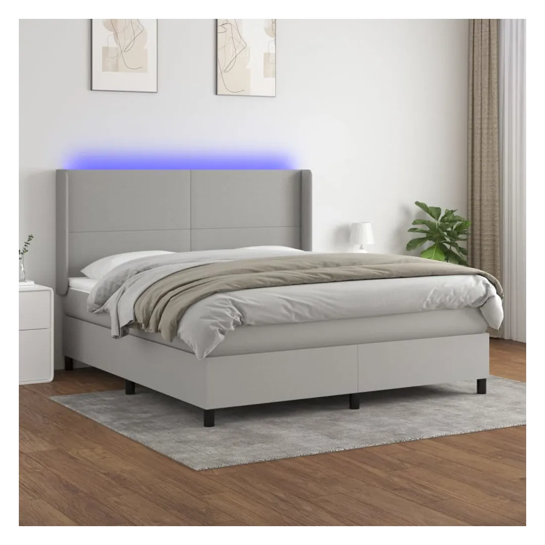Utilisez ce sommier tapissier avec matelas et LED pour profiter d'un sommeil réparateur ! C'est le point central de votre chambre à coucher. Tissu durable : le tissu présente un aspect simple et épuré, et il est respirant et durable. Tête de lit pratique : la tête de lit est réglable en hauteur selon vos préférences. La tête de lit vous offre un excellent soutien du dos lorsque vous êtes assis dans votre lit pour lire ou regarder la télévision. Bande LED colorée : apportez de l'éclairage dans l'obscurité avec des lumières LED colorées ! Matelas à ressorts ensachés : le ressort ensaché individuel intégré est connu pour sa très haute qualité tout en assurant un haut niveau de durabilité et d'adaptabilité. Il peut absorber efficacement le bruit et les chocs causés par les sauts et les rot
