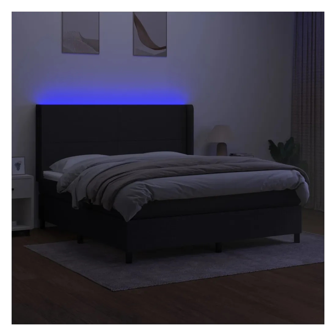 Utilisez ce sommier tapissier avec matelas et LED pour profiter d'un sommeil réparateur ! C'est le point central de votre chambre à coucher. Tissu durable : le tissu présente un aspect simple et épuré, et il est respirant et durable.Tête de lit pratique : la tête de lit est réglable en hauteur selon vos préférences. La tête de lit vous offre un excellent soutien du dos lorsque vous êtes assis dans votre lit pour lire ou regarder la télévision.Bande LED colorée : apportez de l'éclairage dans l'obscurité avec des lumières LED colorées !Matelas à ressorts ensachés : le ressort ensaché individuel intégré est connu pour sa très haute qualité tout en assurant un haut niveau de durabilité et d'adaptabilité. Il peut absorber efficacement le bruit et les chocs causés par les sauts et les rotations.Protège-matelas doux pour la peau : le protège-matelas est recouvert d'un tissu résistant et doux pour la peau, ce qui le rend souple et confortable. Remarque :Pour des raisons d'hygiène, le matelas ne peut pas être retourné si l'emballage est retiré ou ouvert.Seule la partie avec un symbole de ciseaux peut être coupée et seule la partie avec l'USB continuera à fonctionner comme avant.Chaque produit est livré avec un manuel de montage dans la boîte pour un montage facile.Ce produit est doté d'un connecteur USB, mais la source d'alimentation certifiée de USB 5V n'est pas incluse.