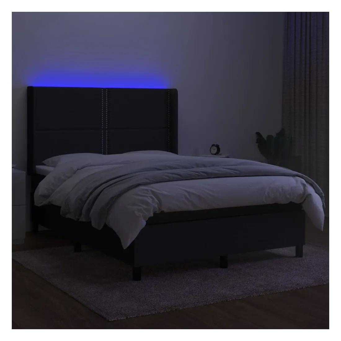 Utilisez ce sommier tapissier avec matelas et LED pour profiter d'un sommeil réparateur ! C'est le point central de votre chambre à coucher. Tissu durable : le tissu présente un aspect simple et épuré, et il est respirant et durable.Tête de lit pratique : la tête de lit est réglable en hauteur selon vos préférences. La tête de lit vous offre un excellent soutien du dos lorsque vous êtes assis dans votre lit pour lire ou regarder la télévision.Bande LED colorée : apportez de l'éclairage dans l'obscurité avec des lumières LED colorées !Matelas à ressorts ensachés : le ressort ensaché individuel intégré est connu pour sa très haute qualité tout en assurant un haut niveau de durabilité et d'adaptabilité. Il peut absorber efficacement le bruit et les chocs causés par les sauts et les rotations.Protège-matelas doux pour la peau : le protège-matelas est recouvert d'un tissu résistant et doux pour la peau, ce qui le rend souple et confortable. Remarque :Pour des raisons d'hygiène, le matelas ne peut pas être retourné si l'emballage est retiré ou ouvert.Seule la partie avec un symbole de ciseaux peut être coupée et seule la partie avec l'USB continuera à fonctionner comme avant.Chaque produit est livré avec un manuel de montage dans la boîte pour un montage facile.Ce produit est doté d'un connecteur USB, mais la source d'alimentation certifiée de USB 5V n'est pas incluse.