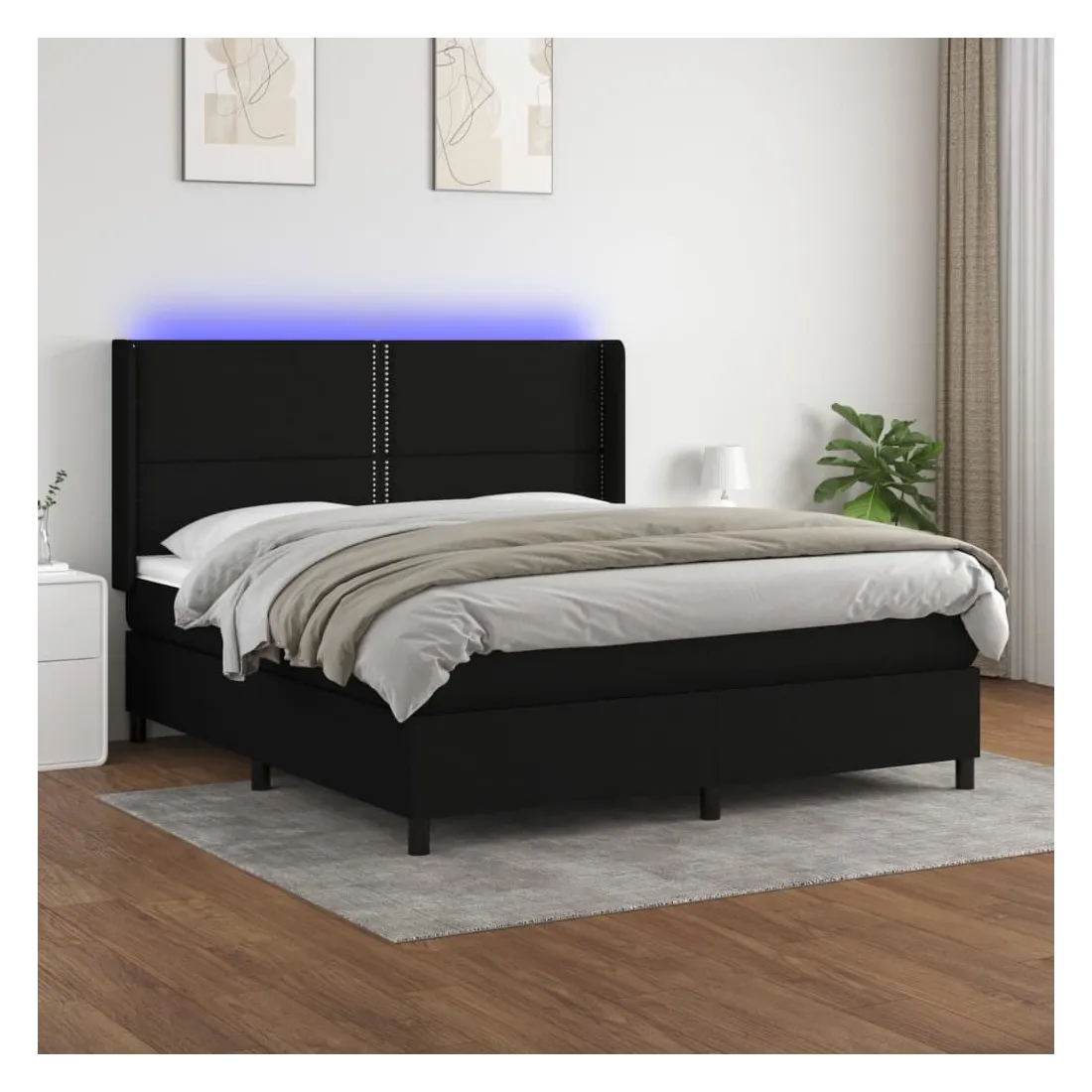 Utilisez ce sommier tapissier avec matelas et LED pour profiter d'un sommeil réparateur ! C'est le point central de votre chambre à coucher. Tissu durable : le tissu présente un aspect simple et épuré, et il est respirant et durable.Tête de lit pratique : la tête de lit est réglable en hauteur selon vos préférences. La tête de lit vous offre un excellent soutien du dos lorsque vous êtes assis dans votre lit pour lire ou regarder la télévision.Bande LED colorée : apportez de l'éclairage dans l'obscurité avec des lumières LED colorées !Matelas à ressorts ensachés : le ressort ensaché individuel intégré est connu pour sa très haute qualité tout en assurant un haut niveau de durabilité et d'adaptabilité. Il peut absorber efficacement le bruit et les chocs causés par les sauts et les rotations.Protège-matelas doux pour la peau : le protège-matelas est recouvert d'un tissu résistant et doux pour la peau, ce qui le rend souple et confortable. Remarque :Pour des raisons d'hygiène, le matelas ne peut pas être retourné si l'emballage est retiré ou ouvert.Seule la partie avec un symbole de ciseaux peut être coupée et seule la partie avec l'USB continuera à fonctionner comme avant.Chaque produit est livré avec un manuel de montage dans la boîte pour un montage facile.Ce produit est doté d'un connecteur USB, mais la source d'alimentation certifiée de USB 5V n'est pas incluse.