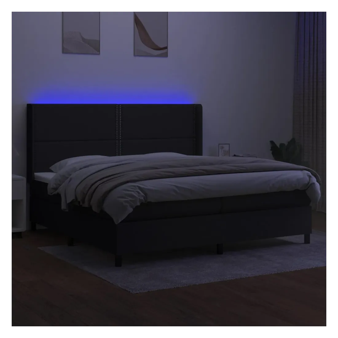 Utilisez ce sommier tapissier avec matelas et LED pour profiter d'un sommeil réparateur ! C'est le point central de votre chambre à coucher. Tissu durable : le tissu présente un aspect simple et épuré, et il est respirant et durable.Tête de lit pratique : la tête de lit est réglable en hauteur selon vos préférences. La tête de lit vous offre un excellent soutien du dos lorsque vous êtes assis dans votre lit pour lire ou regarder la télévision.Bande LED colorée : apportez de l'éclairage dans l'obscurité avec des lumières LED colorées !Matelas à ressorts ensachés : le ressort ensaché individuel intégré est connu pour sa très haute qualité tout en assurant un haut niveau de durabilité et d'adaptabilité. Il peut absorber efficacement le bruit et les chocs causés par les sauts et les rotations.Protège-matelas doux pour la peau : le protège-matelas est recouvert d'un tissu résistant et doux pour la peau, ce qui le rend souple et confortable. Remarque :Pour des raisons d'hygiène, le matelas ne peut pas être retourné si l'emballage est retiré ou ouvert.Seule la partie avec un symbole de ciseaux peut être coupée et seule la partie avec l'USB continuera à fonctionner comme avant.Chaque produit est livré avec un manuel de montage dans la boîte pour un montage facile.Ce produit est doté d'un connecteur USB, mais la source d'alimentation certifiée de USB 5V n'est pas incluse.