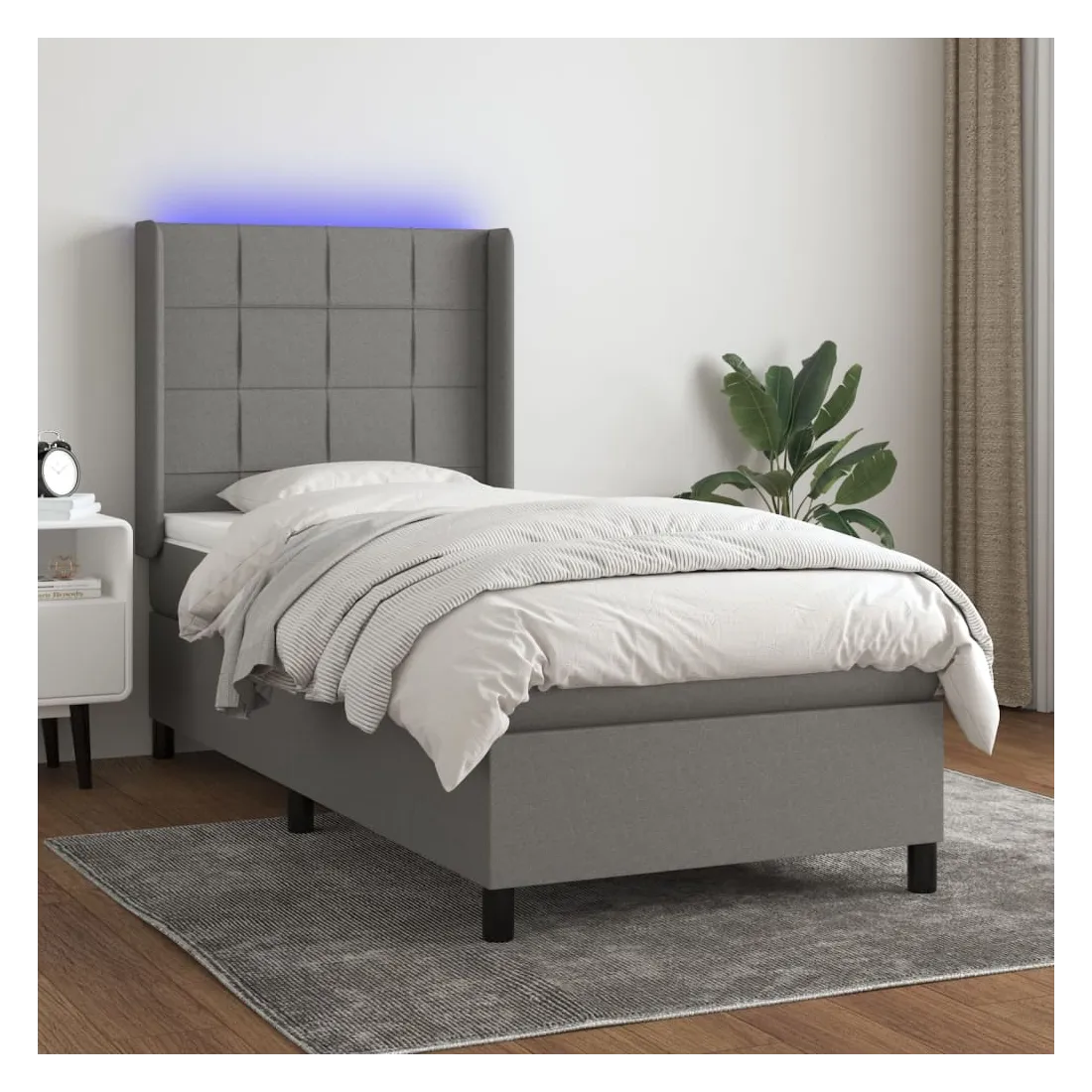 Sommier à lattes de lit matelas LED Gris foncé 90x190cm Tissu