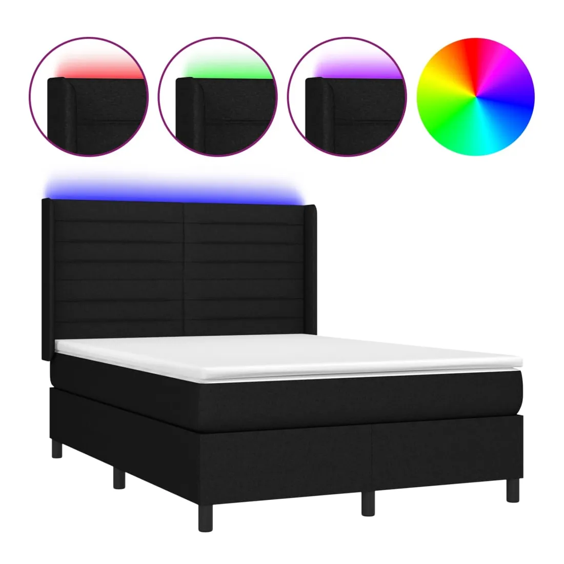Sommier à lattes de lit matelas et LED Noir 140x190 cm Tissu
