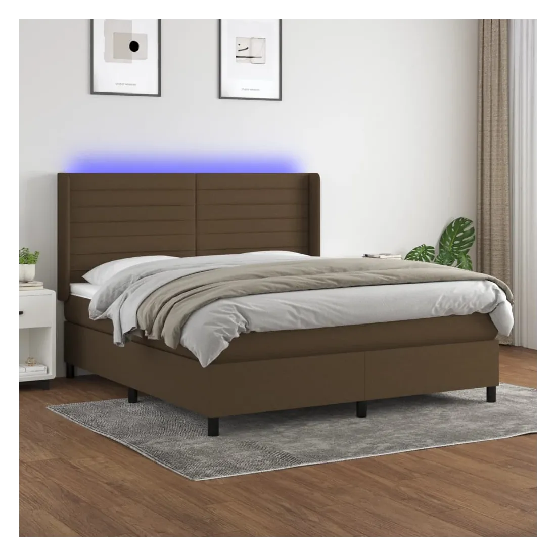 Utilisez ce sommier tapissier avec matelas et LED pour profiter d'un sommeil réparateur ! C'est le point central de votre chambre à coucher. Tissu durable : le tissu présente un aspect simple et épuré, et il est respirant et durable.Tête de lit pratique : la tête de lit est réglable en hauteur selon vos préférences. La tête de lit vous offre un excellent soutien du dos lorsque vous êtes assis dans votre lit pour lire ou regarder la télévision.Bande LED colorée : apportez de l'éclairage dans l'obscurité avec des lumières LED colorées !Matelas à ressorts ensachés : le ressort ensaché individuel intégré est connu pour sa très haute qualité tout en assurant un haut niveau de durabilité et d'adaptabilité. Il peut absorber efficacement le bruit et les chocs causés par les sauts et les rotations.Protège-matelas doux pour la peau : le protège-matelas est recouvert d'un tissu résistant et doux pour la peau, ce qui le rend souple et confortable. Remarque :Pour des raisons d'hygiène, le matelas ne peut pas être retourné si l'emballage est retiré ou ouvert.Seule la partie avec un symbole de ciseaux peut être coupée et seule la partie avec l'USB continuera à fonctionner comme avant.Chaque produit est livré avec un manuel de montage dans la boîte pour un montage facile.Ce produit est doté d'un connecteur USB, mais la source d'alimentation certifiée de USB 5V n'est pas incluse.