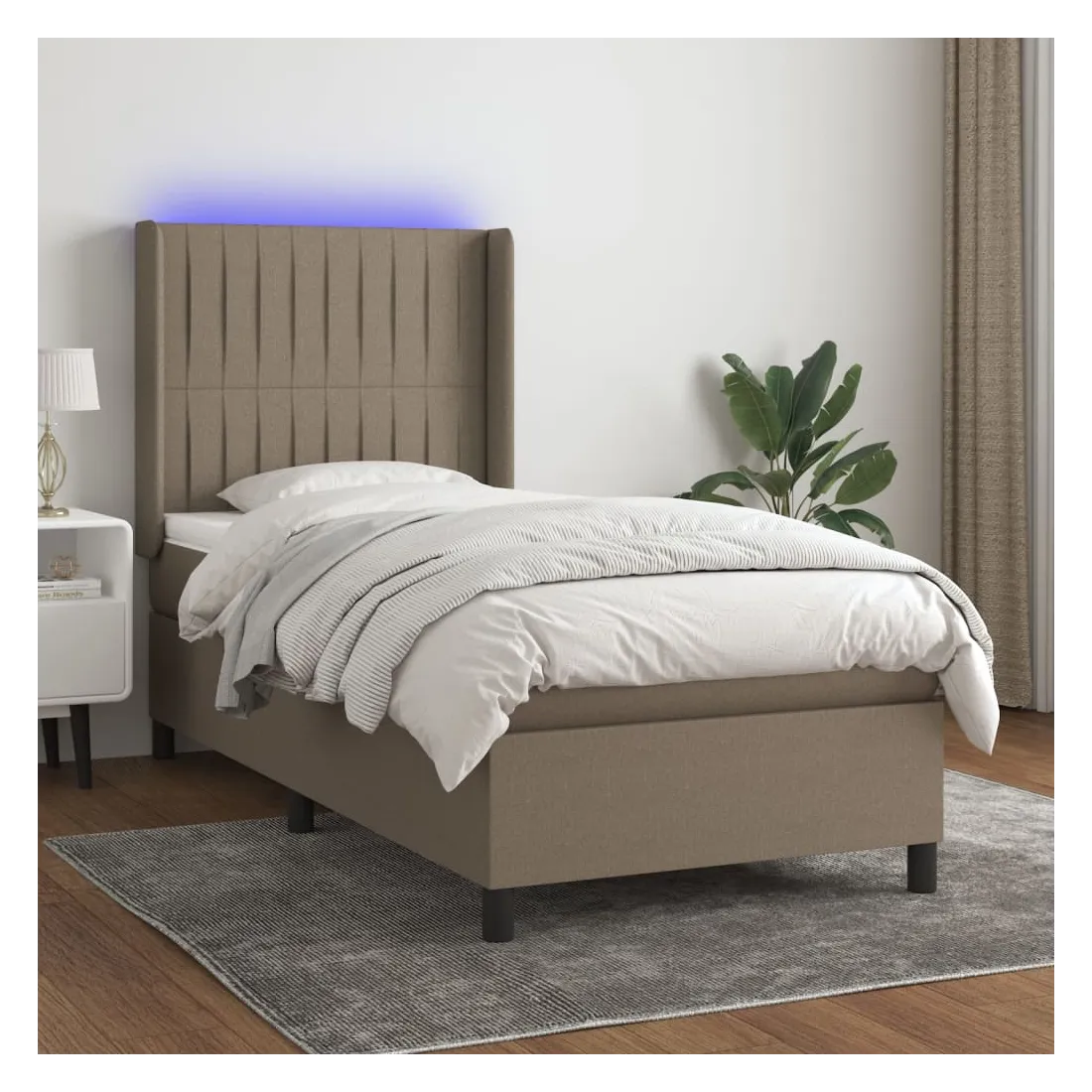 Utilisez ce sommier tapissier avec matelas et LED pour profiter d'un sommeil réparateur ! C'est le point central de votre chambre à coucher. Tissu durable : le tissu présente un aspect simple et épuré, et il est respirant et durable.Tête de lit pratique : la tête de lit est réglable en hauteur selon vos préférences. La tête de lit vous offre un excellent soutien du dos lorsque vous êtes assis dans votre lit pour lire ou regarder la télévision.Bande LED colorée : apportez de l'éclairage dans l'obscurité avec des lumières LED colorées !Matelas à ressorts ensachés : le ressort ensaché individuel intégré est connu pour sa très haute qualité tout en assurant un haut niveau de durabilité et d'adaptabilité. Il peut absorber efficacement le bruit et les chocs causés par les sauts et les rotations.Protège-matelas doux pour la peau : le protège-matelas est recouvert d'un tissu résistant et doux pour la peau, ce qui le rend souple et confortable. Remarque :Pour des raisons d'hygiène, le matelas ne peut pas être retourné si l'emballage est retiré ou ouvert.Seule la partie avec un symbole de ciseaux peut être coupée et seule la partie avec l'USB continuera à fonctionner comme avant.Chaque produit est livré avec un manuel de montage dans la boîte pour un montage facile.Ce produit est doté d'un connecteur USB, mais la source d'alimentation certifiée de USB 5V n'est pas incluse.