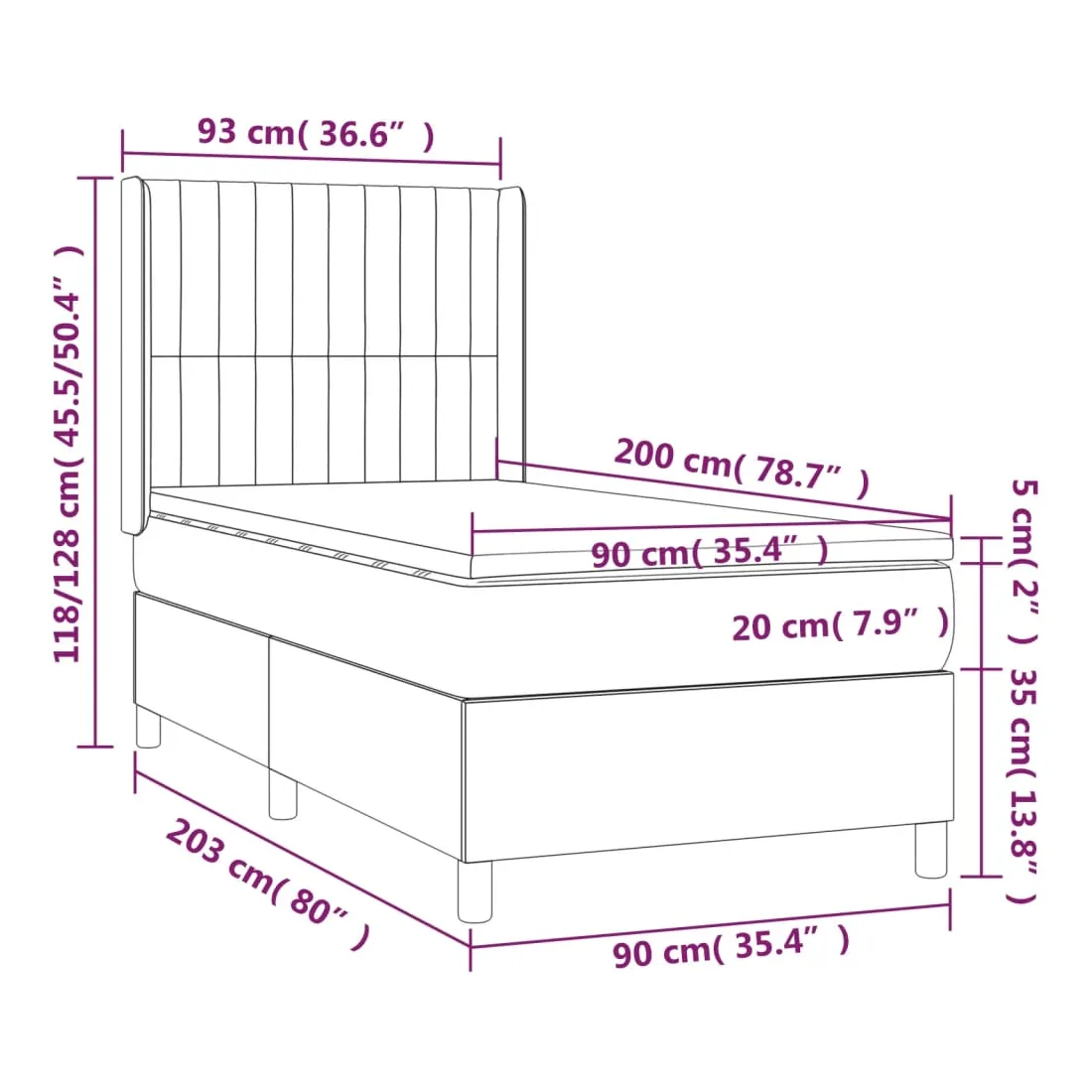 - Dimensions totales : 203 x 93 x 118/128 cm (L x l x H)