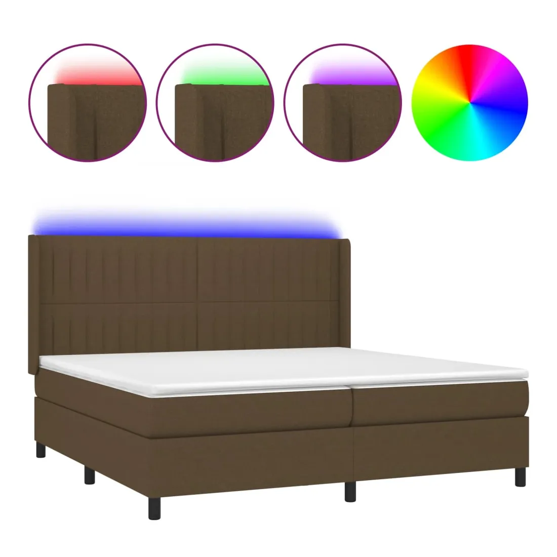 Sommier à lattes de lit matelas et LED Marron foncé 200x200 cm
