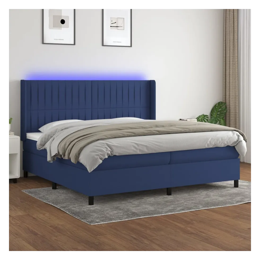 Sommier à lattes de lit matelas et LED Bleu 200x200 cm Tissu