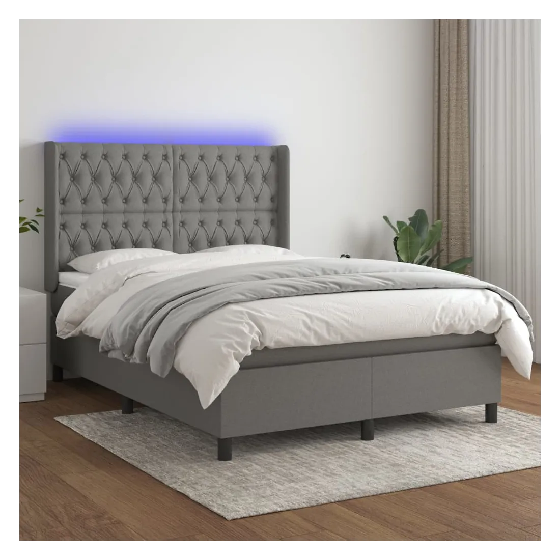 Sommier à lattes de lit matelas LED Gris foncé 140x200 cm Tissu