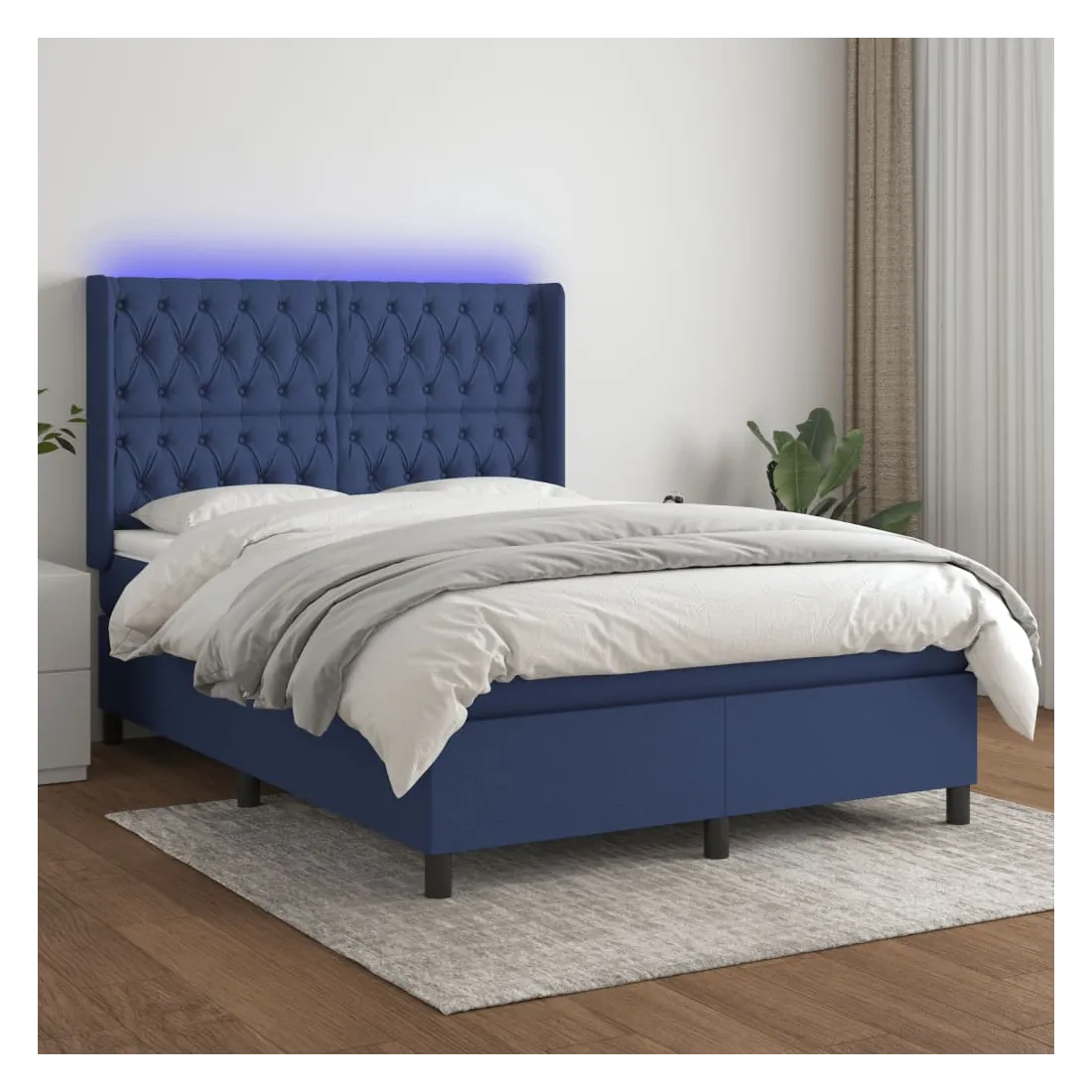 Sommier à lattes de lit matelas et LED Bleu 140x200 cm Tissu