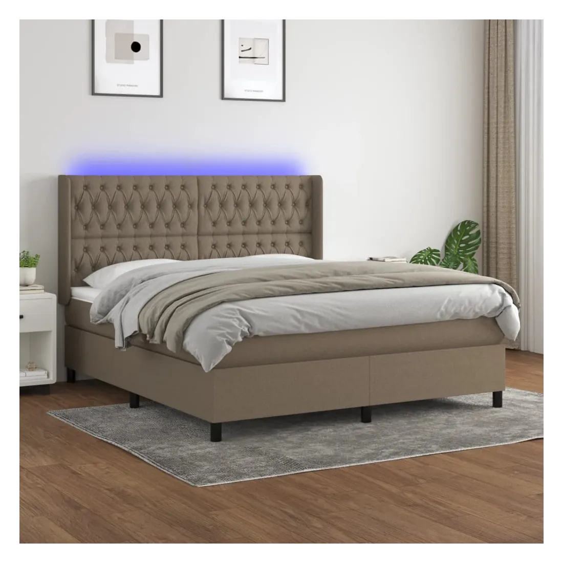 Utilisez ce sommier tapissier avec matelas et LED pour profiter d'un sommeil réparateur ! C'est le point central de votre chambre à coucher. Tissu durable : le tissu présente un aspect simple et épuré, et il est respirant et durable.Tête de lit pratique : la tête de lit est réglable en hauteur selon vos préférences. La tête de lit vous offre un excellent soutien du dos lorsque vous êtes assis dans votre lit pour lire ou regarder la télévision.Bande LED colorée : apportez de l'éclairage dans l'obscurité avec des lumières LED colorées !Matelas à ressorts ensachés : le ressort ensaché individuel intégré est connu pour sa très haute qualité tout en assurant un haut niveau de durabilité et d'adaptabilité. Il peut absorber efficacement le bruit et les chocs causés par les sauts et les rotations.Protège-matelas doux pour la peau : le protège-matelas est recouvert d'un tissu résistant et doux pour la peau, ce qui le rend souple et confortable. Remarque :Pour des raisons d'hygiène, le matelas ne peut pas être retourné si l'emballage est retiré ou ouvert.Seule la partie avec un symbole de ciseaux peut être coupée et seule la partie avec l'USB continuera à fonctionner comme avant.Chaque produit est livré avec un manuel de montage dans la boîte pour un montage facile.Ce produit est doté d'un connecteur USB, mais la source d'alimentation certifiée de USB 5V n'est pas incluse.