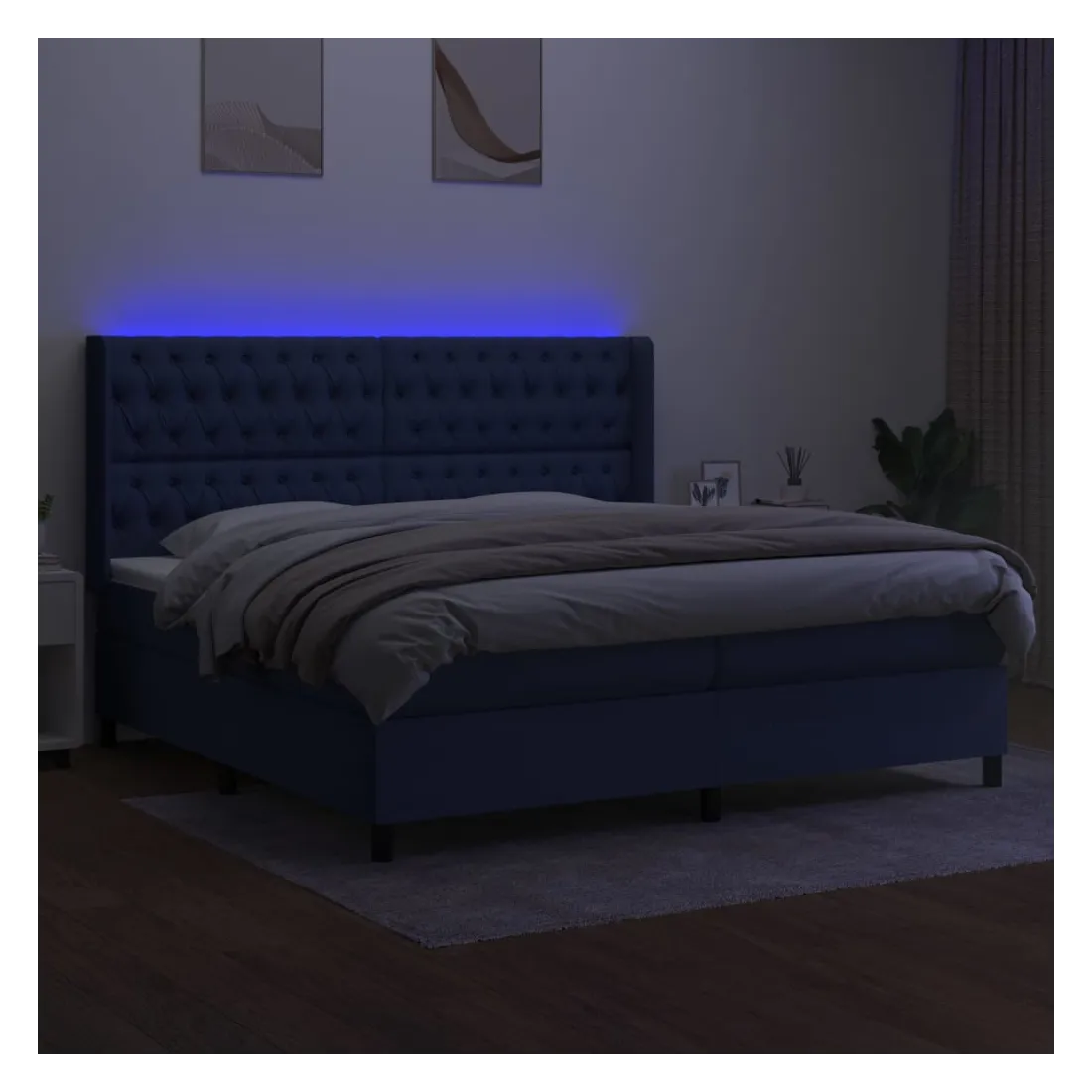 Sommier à lattes de lit matelas et LED Bleu 200x200 cm Tissu