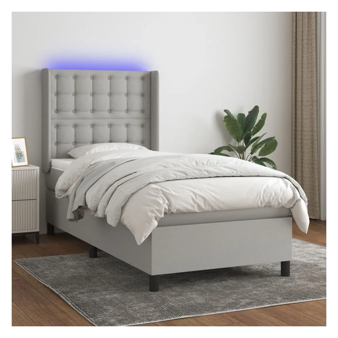 Utilisez ce sommier tapissier avec matelas et LED pour profiter d'un sommeil réparateur ! C'est le point central de votre chambre à coucher. Tissu durable : le tissu présente un aspect simple et épuré, et il est respirant et durable.Tête de lit pratique : la tête de lit est réglable en hauteur selon vos préférences. La tête de lit vous offre un excellent soutien du dos lorsque vous êtes assis dans votre lit pour lire ou regarder la télévision.Bande LED colorée : apportez de l'éclairage dans l'obscurité avec des lumières LED colorées !Matelas à ressorts ensachés : le ressort ensaché individuel intégré est connu pour sa très haute qualité tout en assurant un haut niveau de durabilité et d'adaptabilité. Il peut absorber efficacement le bruit et les chocs causés par les sauts et les rotations.Protège-matelas doux pour la peau : le protège-matelas est recouvert d'un tissu résistant et doux pour la peau, ce qui le rend souple et confortable. Remarque :Pour des raisons d'hygiène, le matelas ne peut pas être retourné si l'emballage est retiré ou ouvert.Seule la partie avec un symbole de ciseaux peut être coupée et seule la partie avec l'USB continuera à fonctionner comme avant.Chaque produit est livré avec un manuel de montage dans la boîte pour un montage facile.Ce produit est doté d'un connecteur USB, mais la source d'alimentation certifiée de USB 5V n'est pas incluse.