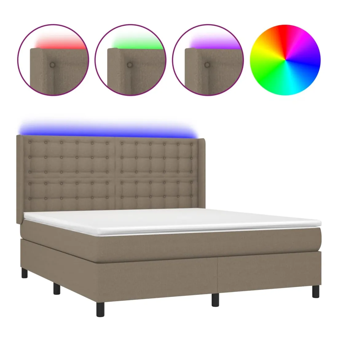 Sommier à lattes de lit matelas et LED Taupe 160x200 cm Tissu