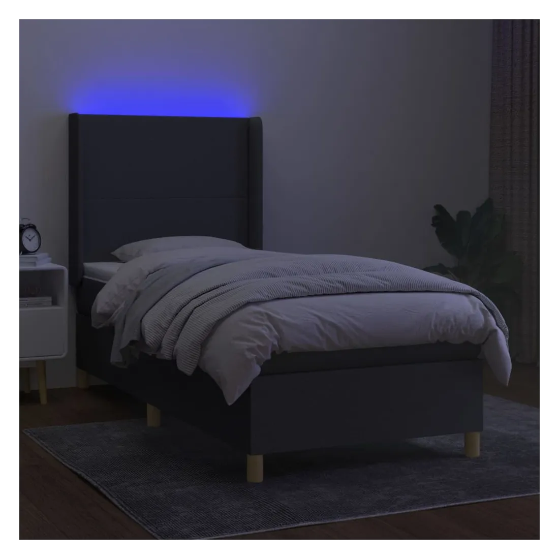 Utilisez ce sommier tapissier avec matelas et LED pour profiter d'un sommeil réparateur ! C'est le point central de votre chambre à coucher. Tissu durable : le tissu présente un aspect simple et épuré, et il est respirant et durable.Tête de lit pratique : la tête de lit est réglable en hauteur selon vos préférences. La tête de lit vous offre un excellent soutien du dos lorsque vous êtes assis dans votre lit pour lire ou regarder la télévision.Bande LED colorée : apportez de l'éclairage dans l'obscurité avec des lumières LED colorées !Matelas à ressorts ensachés : le ressort ensaché individuel intégré est connu pour sa très haute qualité tout en assurant un haut niveau de durabilité et d'adaptabilité. Il peut absorber efficacement le bruit et les chocs causés par les sauts et les rotations.Protège-matelas doux pour la peau : le protège-matelas est recouvert d'un tissu résistant et doux pour la peau, ce qui le rend souple et confortable. Remarque :Pour des raisons d'hygiène, le matelas ne peut pas être retourné si l'emballage est retiré ou ouvert.Seule la partie avec un symbole de ciseaux peut être coupée et seule la partie avec l'USB continuera à fonctionner comme avant.Chaque produit est livré avec un manuel de montage dans la boîte pour un montage facile.Ce produit est doté d'un connecteur USB, mais la source d'alimentation certifiée de USB 5V n'est pas incluse.