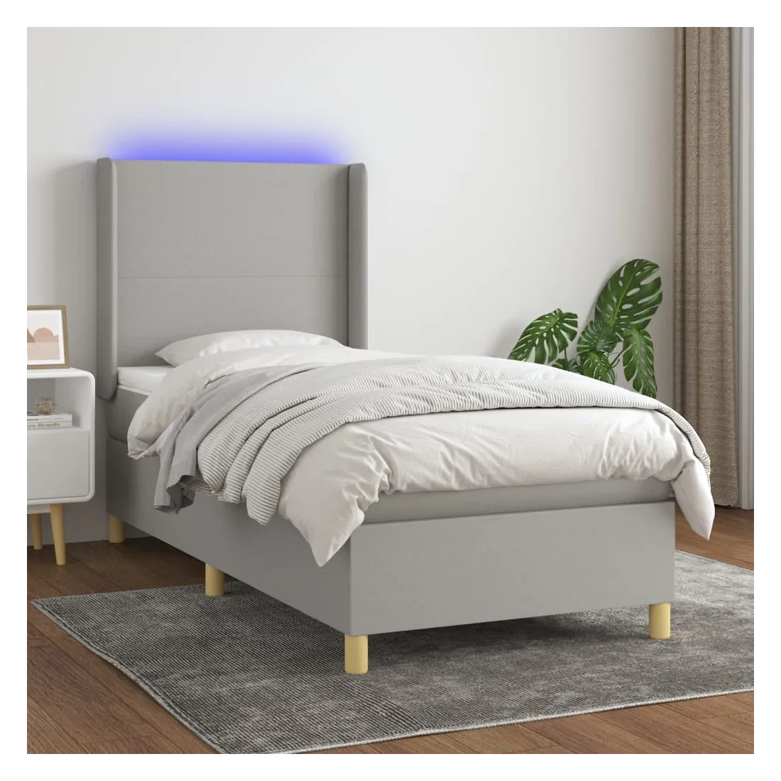 Utilisez ce sommier tapissier avec matelas et LED pour profiter d'un sommeil réparateur ! C'est le point central de votre chambre à coucher. Tissu durable : le tissu présente un aspect simple et épuré, et il est respirant et durable. Tête de lit pratique : la tête de lit est réglable en hauteur selon vos préférences. La tête de lit vous offre un excellent soutien du dos lorsque vous êtes assis dans votre lit pour lire ou regarder la télévision. Bande LED colorée : apportez de l'éclairage dans l'obscurité avec des lumières LED colorées ! Matelas à ressorts ensachés : le ressort ensaché individuel intégré est connu pour sa très haute qualité tout en assurant un haut niveau de durabilité et d'adaptabilité. Il peut absorber efficacement le bruit et les chocs causés par les sauts et les rot
