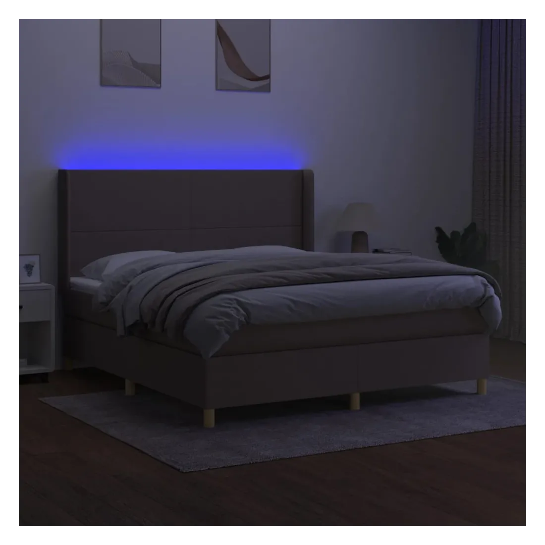 Sommier à lattes de lit matelas et LED Taupe 160x200 cm Tissu