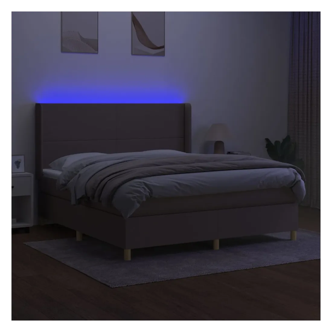 Utilisez ce sommier tapissier avec matelas et LED pour profiter d'un sommeil réparateur ! C'est le point central de votre chambre à coucher. Tissu durable : le tissu présente un aspect simple et épuré, et il est respirant et durable.Tête de lit pratique : la tête de lit est réglable en hauteur selon vos préférences. La tête de lit vous offre un excellent soutien du dos lorsque vous êtes assis dans votre lit pour lire ou regarder la télévision.Bande LED colorée : apportez de l'éclairage dans l'obscurité avec des lumières LED colorées !Matelas à ressorts ensachés : le ressort ensaché individuel intégré est connu pour sa très haute qualité tout en assurant un haut niveau de durabilité et d'adaptabilité. Il peut absorber efficacement le bruit et les chocs causés par les sauts et les rotations.Protège-matelas doux pour la peau : le protège-matelas est recouvert d'un tissu résistant et doux pour la peau, ce qui le rend souple et confortable. Remarque :Pour des raisons d'hygiène, le matelas ne peut pas être retourné si l'emballage est retiré ou ouvert.Seule la partie avec un symbole de ciseaux peut être coupée et seule la partie avec l'USB continuera à fonctionner comme avant.Chaque produit est livré avec un manuel de montage dans la boîte pour un montage facile.Ce produit est doté d'un connecteur USB, mais la source d'alimentation certifiée de USB 5V n'est pas incluse.