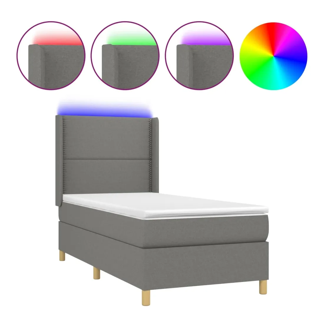 Utilisez ce sommier tapissier avec matelas et LED pour profiter d'un sommeil réparateur ! C'est le point central de votre chambre à coucher. Tissu durable : le tissu présente un aspect simple et épuré, et il est respirant et durable.Tête de lit pratique : la tête de lit est réglable en hauteur selon vos préférences. La tête de lit vous offre un excellent soutien du dos lorsque vous êtes assis dans votre lit pour lire ou regarder la télévision.Bande LED colorée : apportez de l'éclairage dans l'obscurité avec des lumières LED colorées !Matelas à ressorts ensachés : le ressort ensaché individuel intégré est connu pour sa très haute qualité tout en assurant un haut niveau de durabilité et d'adaptabilité. Il peut absorber efficacement le bruit et les chocs causés par les sauts et les rotations.Protège-matelas doux pour la peau : le protège-matelas est recouvert d'un tissu résistant et doux pour la peau, ce qui le rend souple et confortable. Remarque :Pour des raisons d'hygiène, le matelas ne peut pas être retourné si l'emballage est retiré ou ouvert.Seule la partie avec un symbole de ciseaux peut être coupée et seule la partie avec l'USB continuera à fonctionner comme avant.Chaque produit est livré avec un manuel de montage dans la boîte pour un montage facile.Ce produit est doté d'un connecteur USB, mais la source d'alimentation certifiée de USB 5V n'est pas incluse.