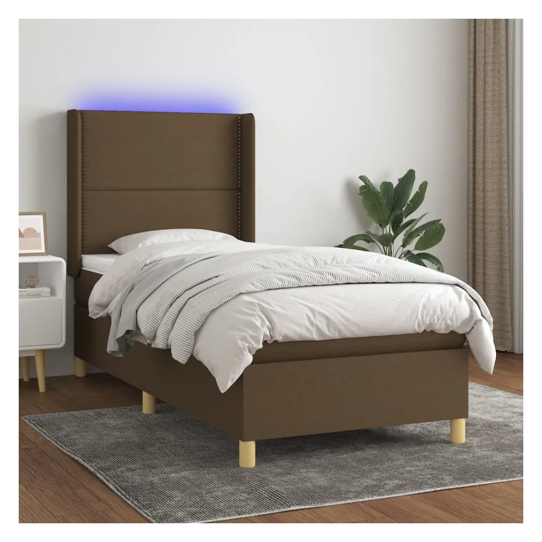 Sommier à lattes de lit matelas et LED Marron foncé 100x200cm