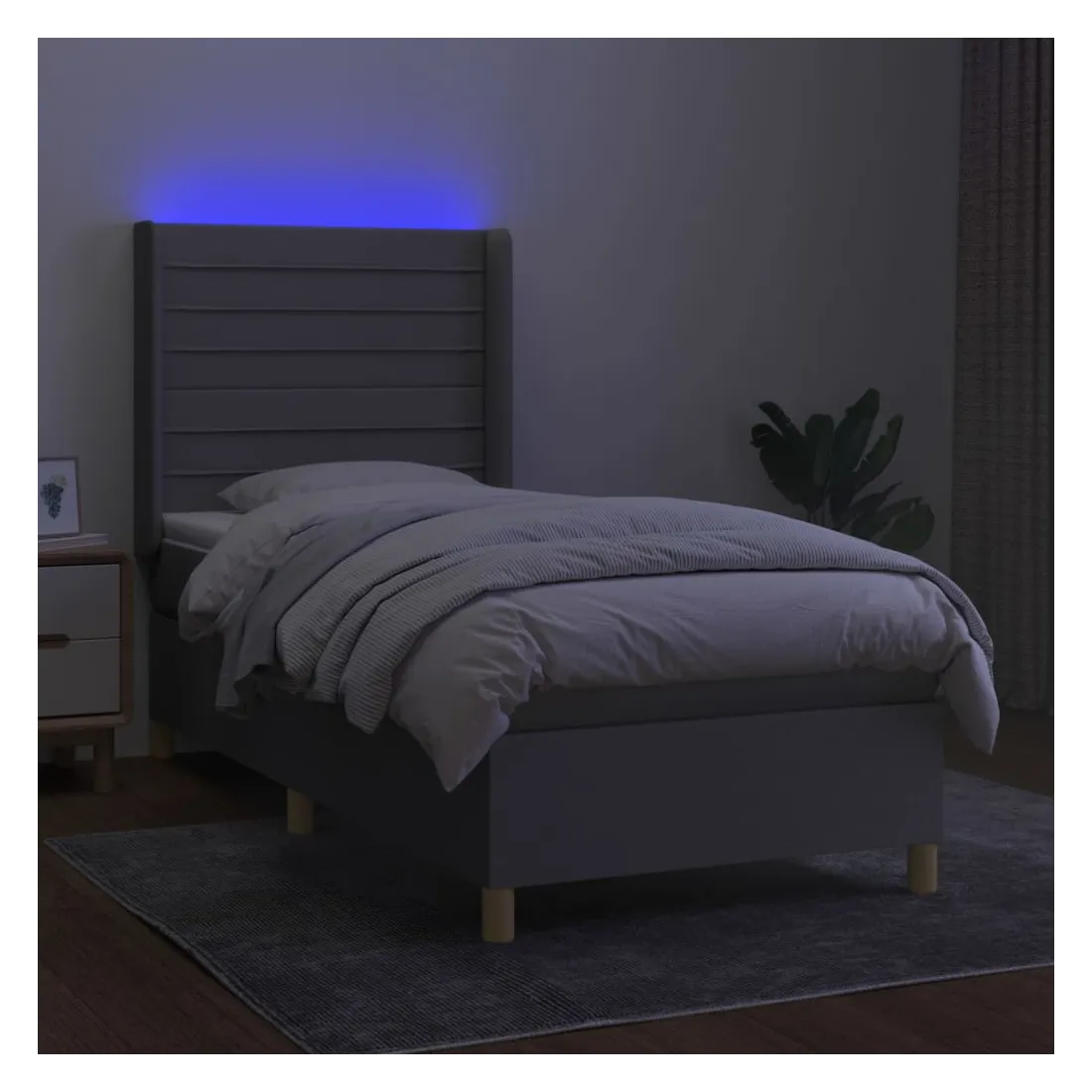 Utilisez ce sommier tapissier avec matelas et LED pour profiter d'un sommeil réparateur ! C'est le point central de votre chambre à coucher. Tissu durable : le tissu présente un aspect simple et épuré, et il est respirant et durable.Tête de lit pratique : la tête de lit est réglable en hauteur selon vos préférences. La tête de lit vous offre un excellent soutien du dos lorsque vous êtes assis dans votre lit pour lire ou regarder la télévision.Bande LED colorée : apportez de l'éclairage dans l'obscurité avec des lumières LED colorées !Matelas à ressorts ensachés : le ressort ensaché individuel intégré est connu pour sa très haute qualité tout en assurant un haut niveau de durabilité et d'adaptabilité. Il peut absorber efficacement le bruit et les chocs causés par les sauts et les rotations.Protège-matelas doux pour la peau : le protège-matelas est recouvert d'un tissu résistant et doux pour la peau, ce qui le rend souple et confortable. Remarque :Pour des raisons d'hygiène, le matelas ne peut pas être retourné si l'emballage est retiré ou ouvert.Seule la partie avec un symbole de ciseaux peut être coupée et seule la partie avec l'USB continuera à fonctionner comme avant.Chaque produit est livré avec un manuel de montage dans la boîte pour un montage facile.Ce produit est doté d'un connecteur USB, mais la source d'alimentation certifiée de USB 5V n'est pas incluse.