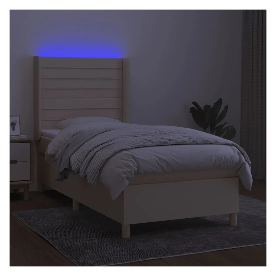 Utilisez ce sommier tapissier avec matelas et LED pour profiter d'un sommeil réparateur ! C'est le point central de votre chambre à coucher. Tissu durable : le tissu présente un aspect simple et épuré, et il est respirant et durable.Tête de lit pratique : la tête de lit est réglable en hauteur selon vos préférences. La tête de lit vous offre un excellent soutien du dos lorsque vous êtes assis dans votre lit pour lire ou regarder la télévision.Bande LED colorée : apportez de l'éclairage dans l'obscurité avec des lumières LED colorées !Matelas à ressorts ensachés : le ressort ensaché individuel intégré est connu pour sa très haute qualité tout en assurant un haut niveau de durabilité et d'adaptabilité. Il peut absorber efficacement le bruit et les chocs causés par les sauts et les rotations.Protège-matelas doux pour la peau : le protège-matelas est recouvert d'un tissu résistant et doux pour la peau, ce qui le rend souple et confortable. Remarque :Pour des raisons d'hygiène, le matelas ne peut pas être retourné si l'emballage est retiré ou ouvert.Seule la partie avec un symbole de ciseaux peut être coupée et seule la partie avec l'USB continuera à fonctionner comme avant.Chaque produit est livré avec un manuel de montage dans la boîte pour un montage facile.Ce produit est doté d'un connecteur USB, mais la source d'alimentation certifiée de USB 5V n'est pas incluse.