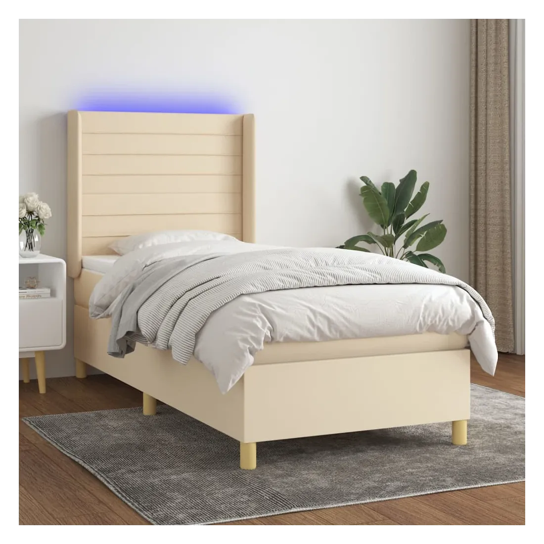 Sommier à lattes de lit matelas et LED Crème 90x200 cm Tissu