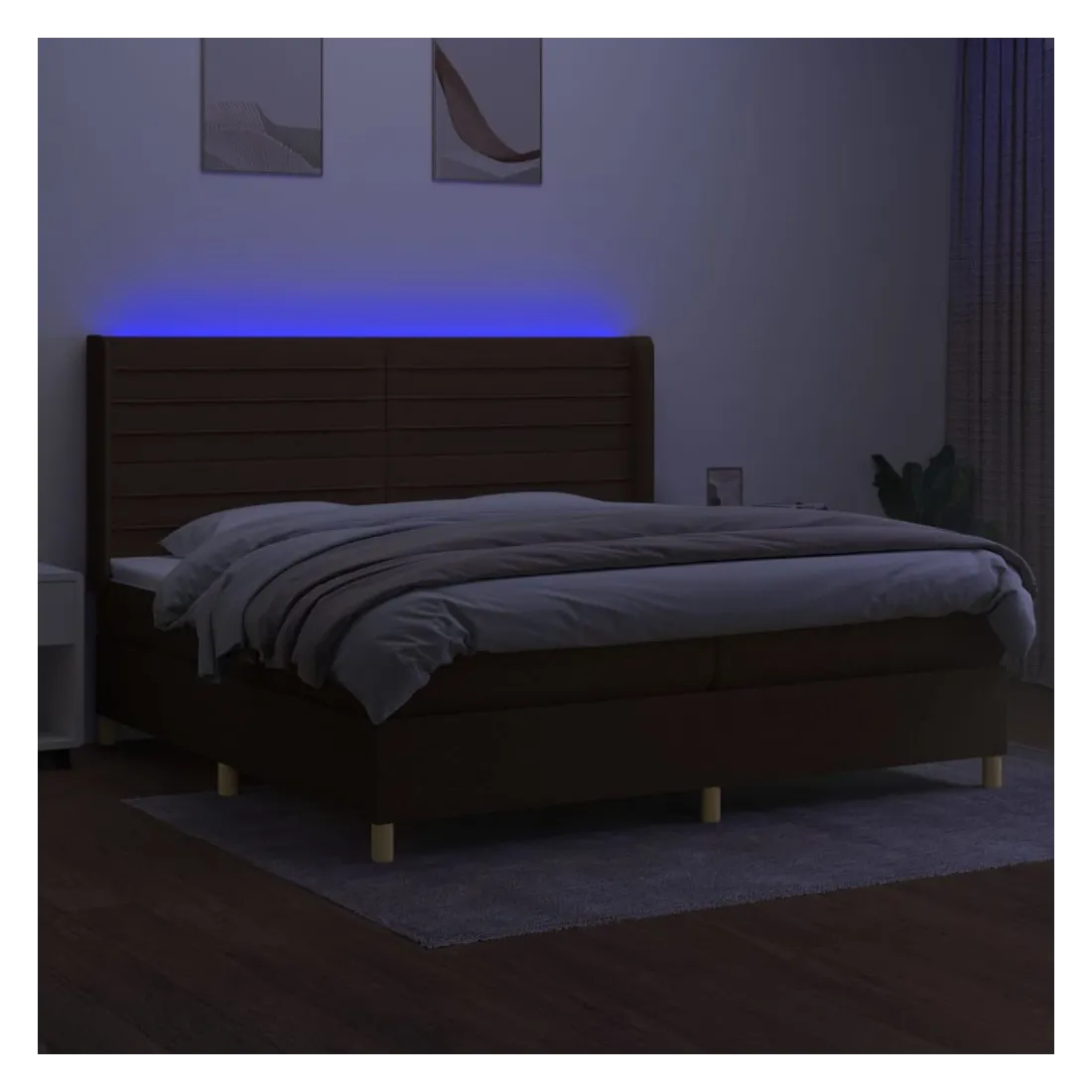 Sommier à lattes de lit matelas et LED Marron foncé 200x200 cm