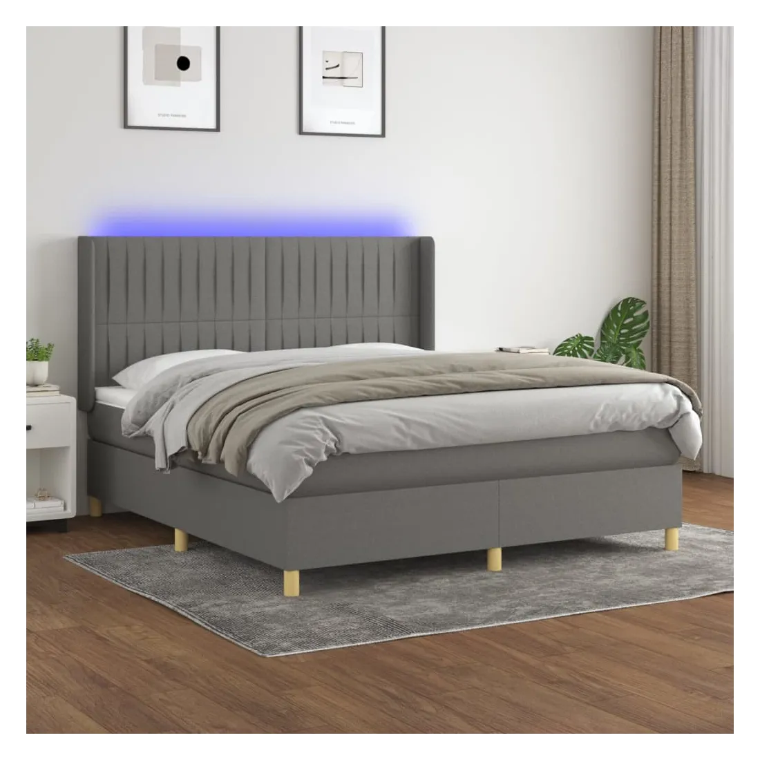 Utilisez ce sommier tapissier avec matelas et LED pour profiter d'un sommeil réparateur ! C'est le point central de votre chambre à coucher. Tissu durable : le tissu présente un aspect simple et épuré, et il est respirant et durable.Tête de lit pratique : la tête de lit est réglable en hauteur selon vos préférences. La tête de lit vous offre un excellent soutien du dos lorsque vous êtes assis dans votre lit pour lire ou regarder la télévision.Bande LED colorée : apportez de l'éclairage dans l'obscurité avec des lumières LED colorées !Matelas à ressorts ensachés : le ressort ensaché individuel intégré est connu pour sa très haute qualité tout en assurant un haut niveau de durabilité et d'adaptabilité. Il peut absorber efficacement le bruit et les chocs causés par les sauts et les rotations.Protège-matelas doux pour la peau : le protège-matelas est recouvert d'un tissu résistant et doux pour la peau, ce qui le rend souple et confortable. Remarque :Pour des raisons d'hygiène, le matelas ne peut pas être retourné si l'emballage est retiré ou ouvert.Seule la partie avec un symbole de ciseaux peut être coupée et seule la partie avec l'USB continuera à fonctionner comme avant.Chaque produit est livré avec un manuel de montage dans la boîte pour un montage facile.Ce produit est doté d'un connecteur USB, mais la source d'alimentation certifiée de USB 5V n'est pas incluse.