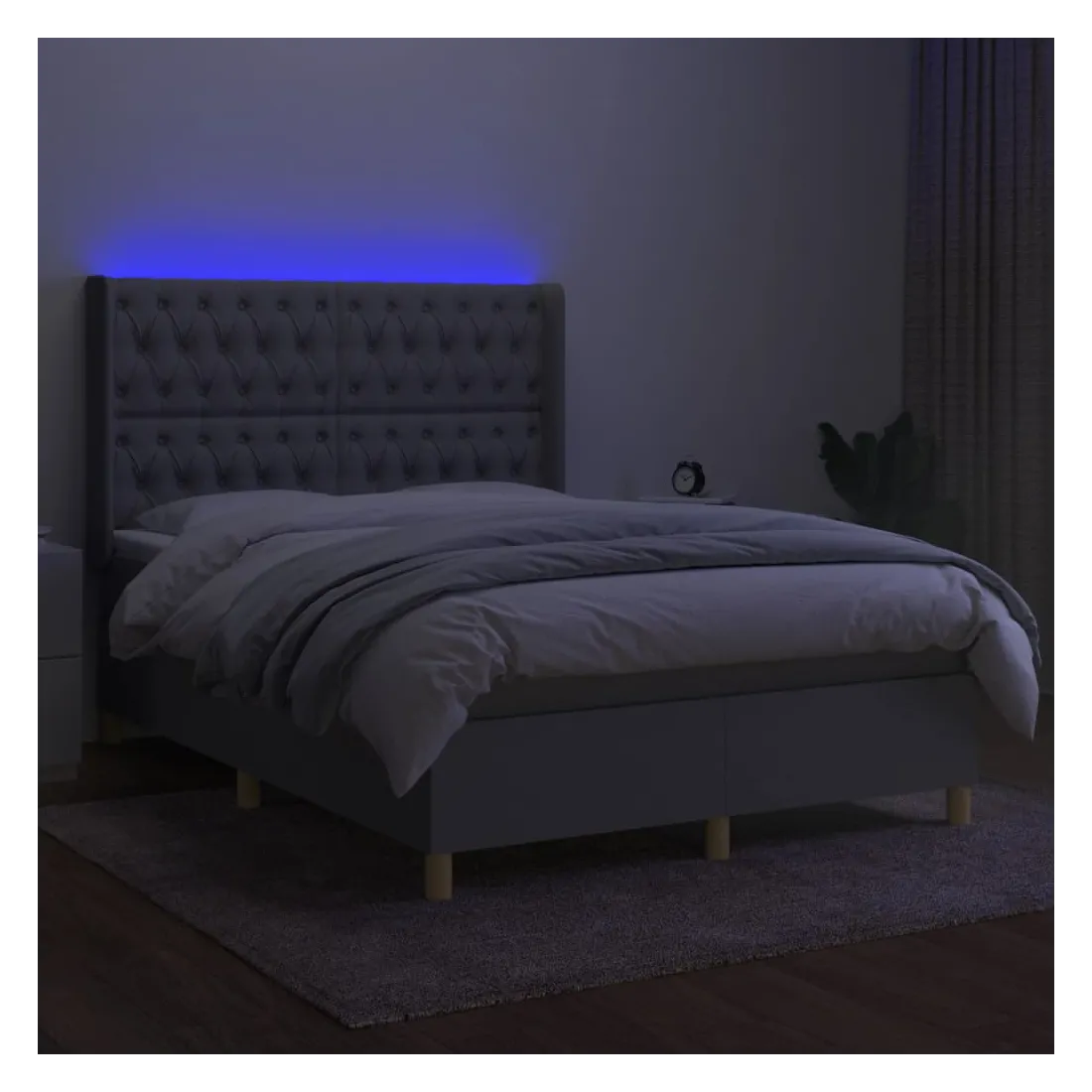 Utilisez ce sommier tapissier avec matelas et LED pour profiter d'un sommeil réparateur ! C'est le point central de votre chambre à coucher. Tissu durable : le tissu présente un aspect simple et épuré, et il est respirant et durable.Tête de lit pratique : la tête de lit est réglable en hauteur selon vos préférences. La tête de lit vous offre un excellent soutien du dos lorsque vous êtes assis dans votre lit pour lire ou regarder la télévision.Bande LED colorée : apportez de l'éclairage dans l'obscurité avec des lumières LED colorées !Matelas à ressorts ensachés : le ressort ensaché individuel intégré est connu pour sa très haute qualité tout en assurant un haut niveau de durabilité et d'adaptabilité. Il peut absorber efficacement le bruit et les chocs causés par les sauts et les rotations.Protège-matelas doux pour la peau : le protège-matelas est recouvert d'un tissu résistant et doux pour la peau, ce qui le rend souple et confortable. Remarque :Pour des raisons d'hygiène, le matelas ne peut pas être retourné si l'emballage est retiré ou ouvert.Seule la partie avec un symbole de ciseaux peut être coupée et seule la partie avec l'USB continuera à fonctionner comme avant.Chaque produit est livré avec un manuel de montage dans la boîte pour un montage facile.Ce produit est doté d'un connecteur USB, mais la source d'alimentation certifiée de USB 5V n'est pas incluse.