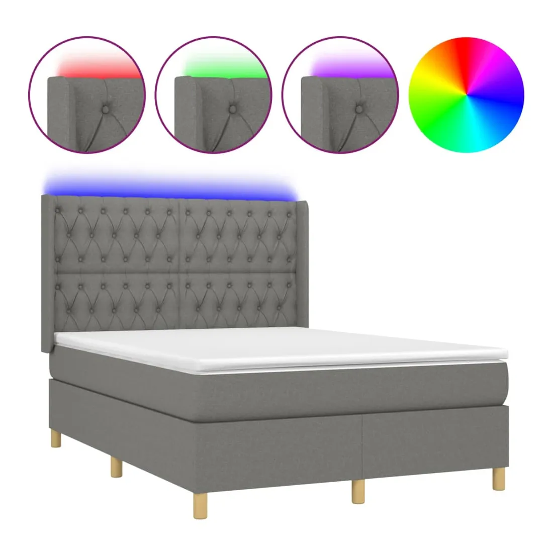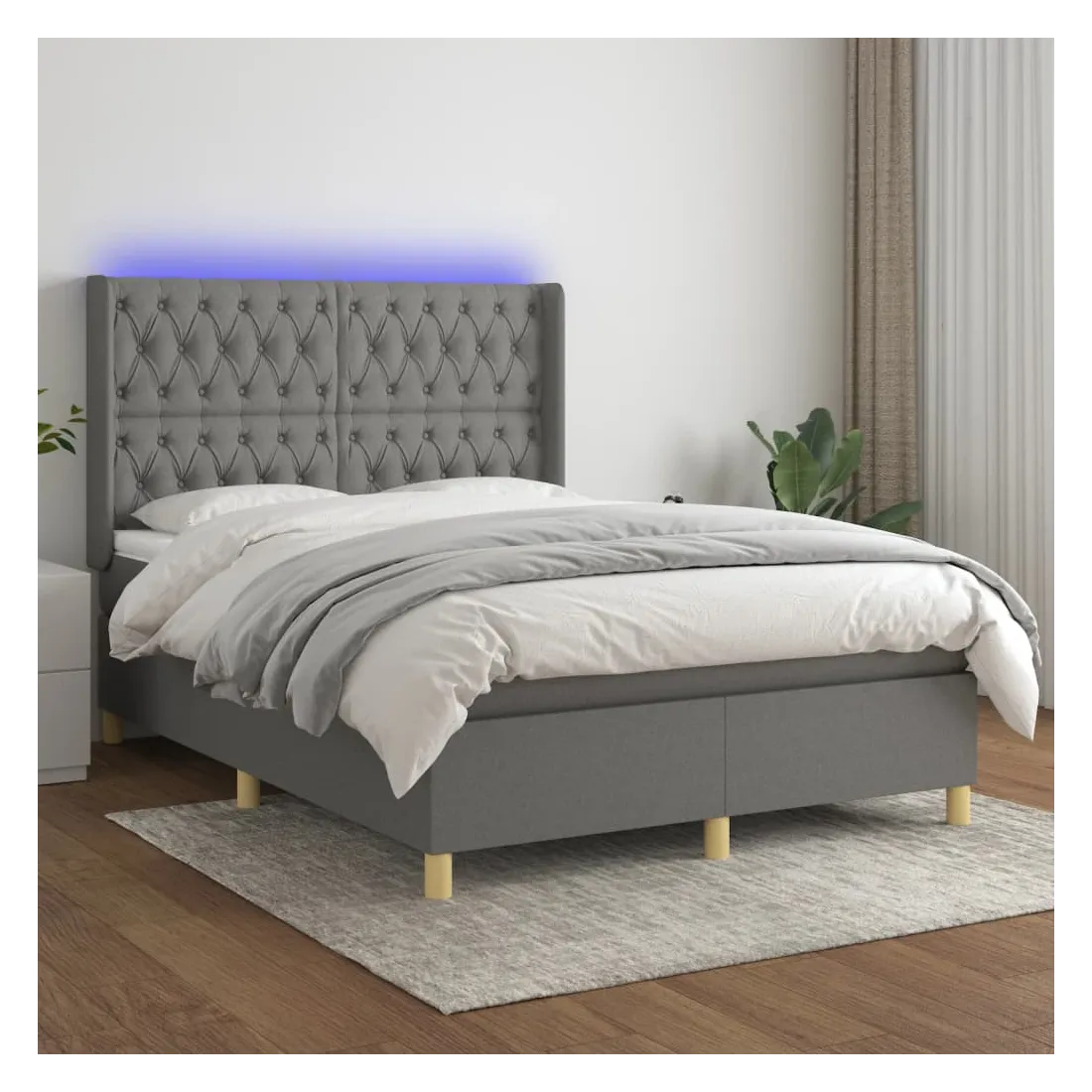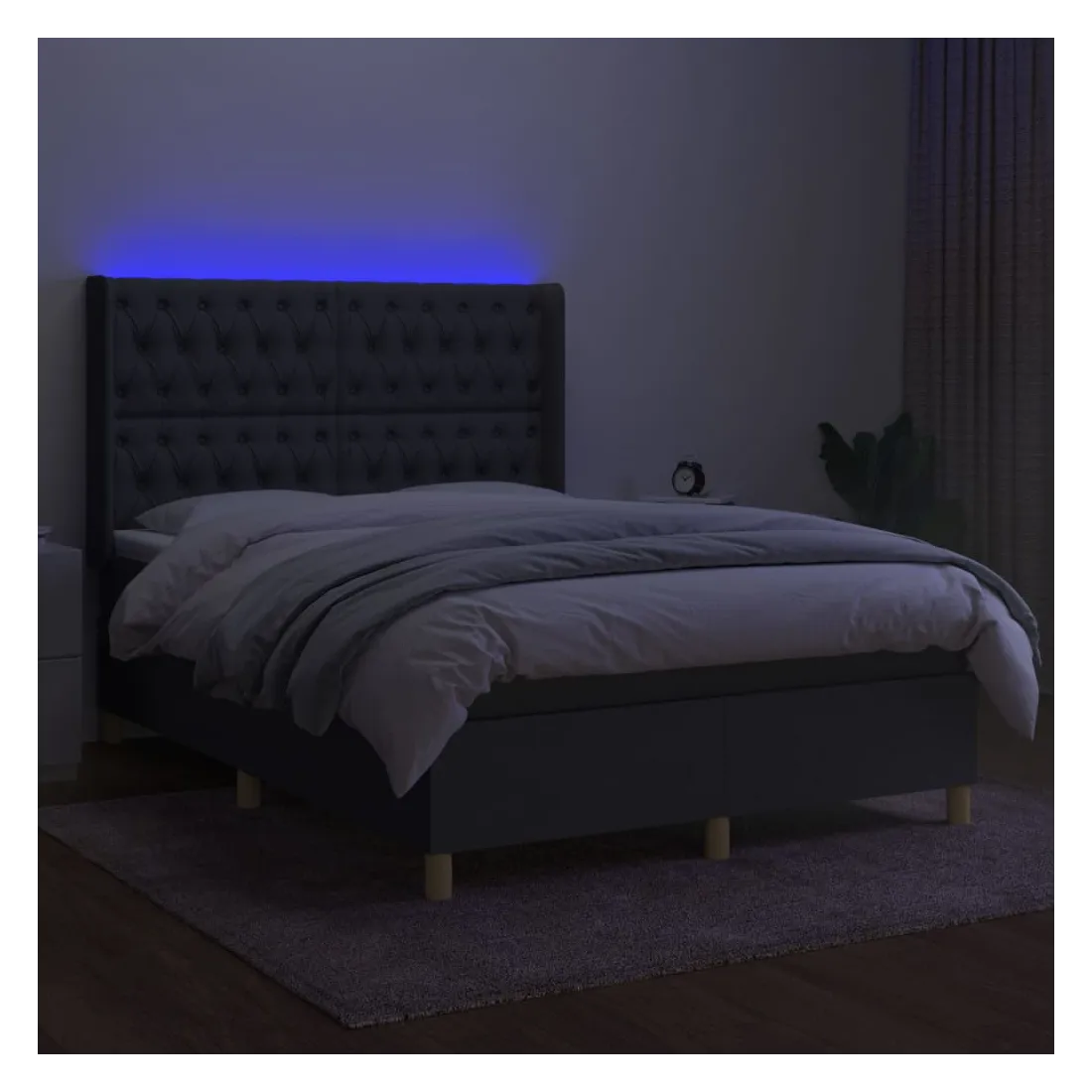 Utilisez ce sommier tapissier avec matelas et LED pour profiter d'un sommeil réparateur ! C'est le point central de votre chambre à coucher. Tissu durable : le tissu présente un aspect simple et épuré, et il est respirant et durable.Tête de lit pratique : la tête de lit est réglable en hauteur selon vos préférences. La tête de lit vous offre un excellent soutien du dos lorsque vous êtes assis dans votre lit pour lire ou regarder la télévision.Bande LED colorée : apportez de l'éclairage dans l'obscurité avec des lumières LED colorées !Matelas à ressorts ensachés : le ressort ensaché individuel intégré est connu pour sa très haute qualité tout en assurant un haut niveau de durabilité et d'adaptabilité. Il peut absorber efficacement le bruit et les chocs causés par les sauts et les rotations.Protège-matelas doux pour la peau : le protège-matelas est recouvert d'un tissu résistant et doux pour la peau, ce qui le rend souple et confortable. Remarque :Pour des raisons d'hygiène, le matelas ne peut pas être retourné si l'emballage est retiré ou ouvert.Seule la partie avec un symbole de ciseaux peut être coupée et seule la partie avec l'USB continuera à fonctionner comme avant.Chaque produit est livré avec un manuel de montage dans la boîte pour un montage facile.Ce produit est doté d'un connecteur USB, mais la source d'alimentation certifiée de USB 5V n'est pas incluse.