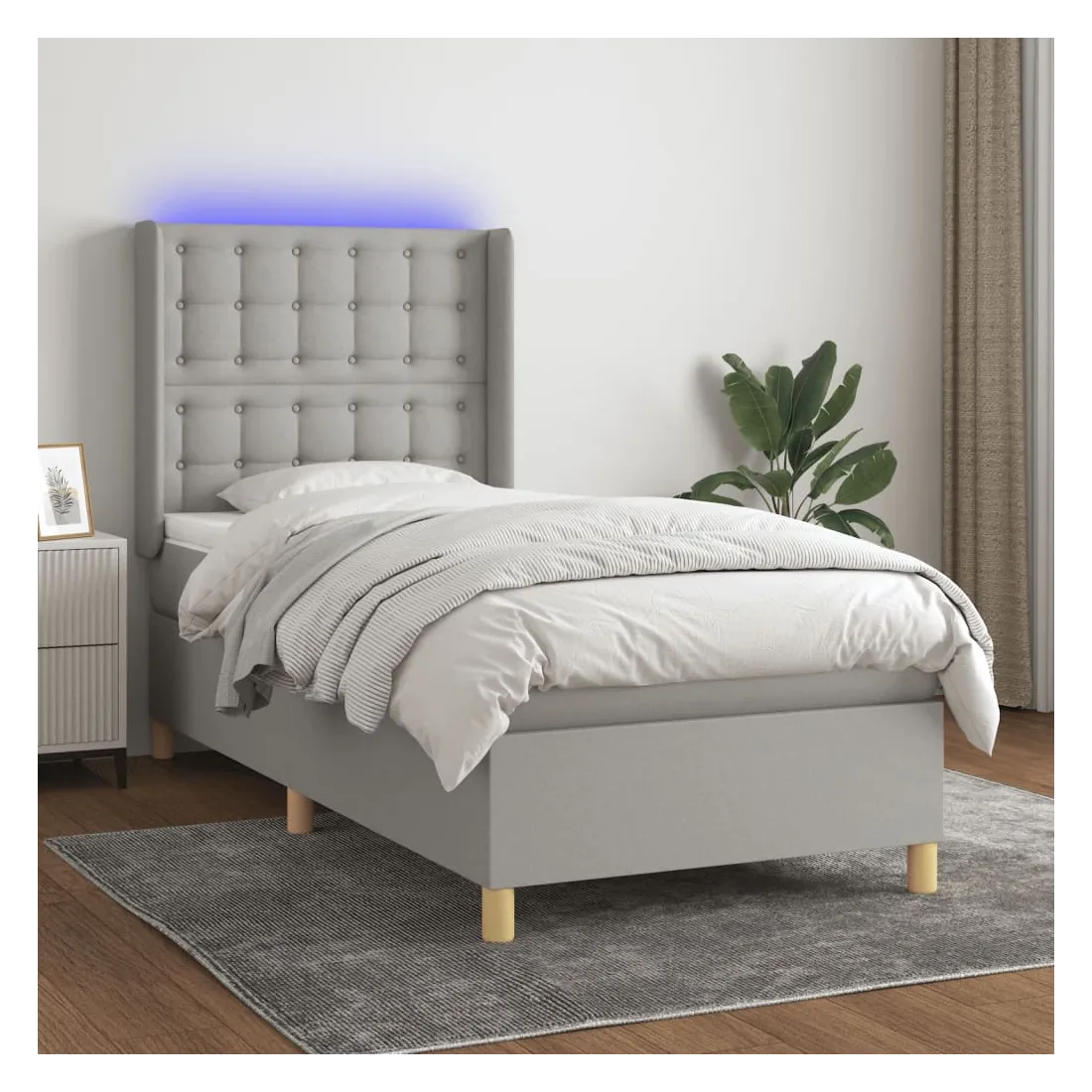 Utilisez ce sommier tapissier avec matelas et LED pour profiter d'un sommeil réparateur ! C'est le point central de votre chambre à coucher. Tissu durable : le tissu présente un aspect simple et épuré, et il est respirant et durable. Tête de lit pratique : la tête de lit est réglable en hauteur selon vos préférences. La tête de lit vous offre un excellent soutien du dos lorsque vous êtes assis dans votre lit pour lire ou regarder la télévision. Bande LED colorée : apportez de l'éclairage dans l'obscurité avec des lumières LED colorées ! Matelas à ressorts ensachés : le ressort ensaché individuel intégré est connu pour sa très haute qualité tout en assurant un haut niveau de durabilité et d'adaptabilité. Il peut absorber efficacement le bruit et les chocs causés par les sauts et les rot