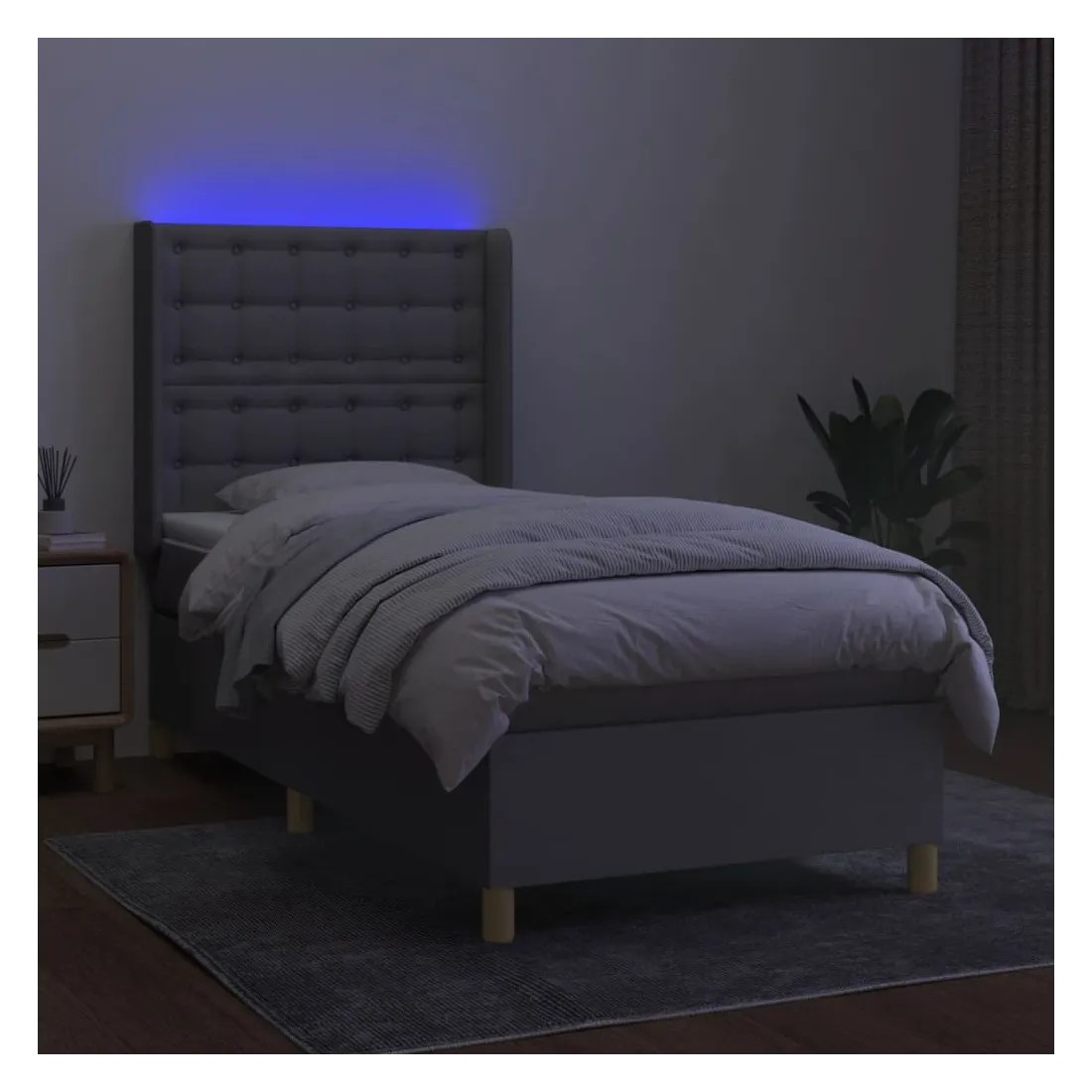 Utilisez ce sommier tapissier avec matelas et LED pour profiter d'un sommeil réparateur ! C'est le point central de votre chambre à coucher. Tissu durable : le tissu présente un aspect simple et épuré, et il est respirant et durable.Tête de lit pratique : la tête de lit est réglable en hauteur selon vos préférences. La tête de lit vous offre un excellent soutien du dos lorsque vous êtes assis dans votre lit pour lire ou regarder la télévision.Bande LED colorée : apportez de l'éclairage dans l'obscurité avec des lumières LED colorées !Matelas à ressorts ensachés : le ressort ensaché individuel intégré est connu pour sa très haute qualité tout en assurant un haut niveau de durabilité et d'adaptabilité. Il peut absorber efficacement le bruit et les chocs causés par les sauts et les rotations.Protège-matelas doux pour la peau : le protège-matelas est recouvert d'un tissu résistant et doux pour la peau, ce qui le rend souple et confortable. Remarque :Pour des raisons d'hygiène, le matelas ne peut pas être retourné si l'emballage est retiré ou ouvert.Seule la partie avec un symbole de ciseaux peut être coupée et seule la partie avec l'USB continuera à fonctionner comme avant.Chaque produit est livré avec un manuel de montage dans la boîte pour un montage facile.Ce produit est doté d'un connecteur USB, mais la source d'alimentation certifiée de USB 5V n'est pas incluse.