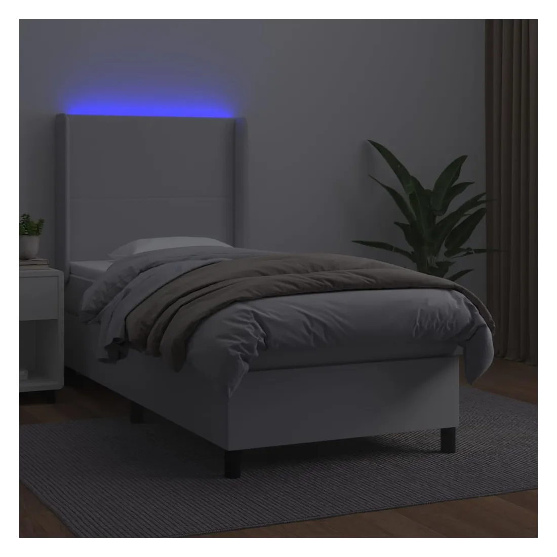 Utilisez ce sommier tapissier avec matelas et LED pour profiter d'un sommeil réparateur ! C'est le point central de votre chambre à coucher. Similicuir durable : le similicuir de qualité supérieure est un matériau très durable. Il est résistant aux taches, ce qui le rend facile à nettoyer avec un chiffon humide. La surface lisse donne également un aspect luxueux et la beauté du cuir véritable.Tête de lit pratique : la tête de lit est réglable en hauteur selon vos préférences. La tête de lit vous offre un excellent soutien du dos lorsque vous êtes assis dans votre lit pour lire ou regarder la télévision.Bande LED colorée : apportez de l'éclairage dans l'obscurité avec des lumières LED colorées !Matelas à ressorts ensachés : le ressort ensaché individuel intégré est connu pour sa très haute qualité tout en assurant un haut niveau de durabilité et d'adaptabilité. Il peut absorber efficacement le bruit et les chocs causés par les sauts et les rotations.Protège-matelas doux pour la peau : le protège-matelas est recouvert d'un tissu résistant et doux pour la peau, ce qui le rend souple et confortable. Remarque :Pour des raisons d'hygiène, le matelas ne peut pas être retourné si l'emballage est retiré ou ouvert.Seule la partie avec un symbole de ciseaux peut être coupée et seule la partie avec l'USB continuera à fonctionner comme avant.Chaque produit est livré avec un manuel de montage dans la boîte pour un montage facile.Ce produit est doté d'un connecteur USB, mais la source d'alimentation certifiée de USB 5V n'est pas incluse.