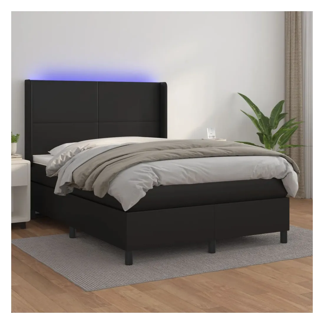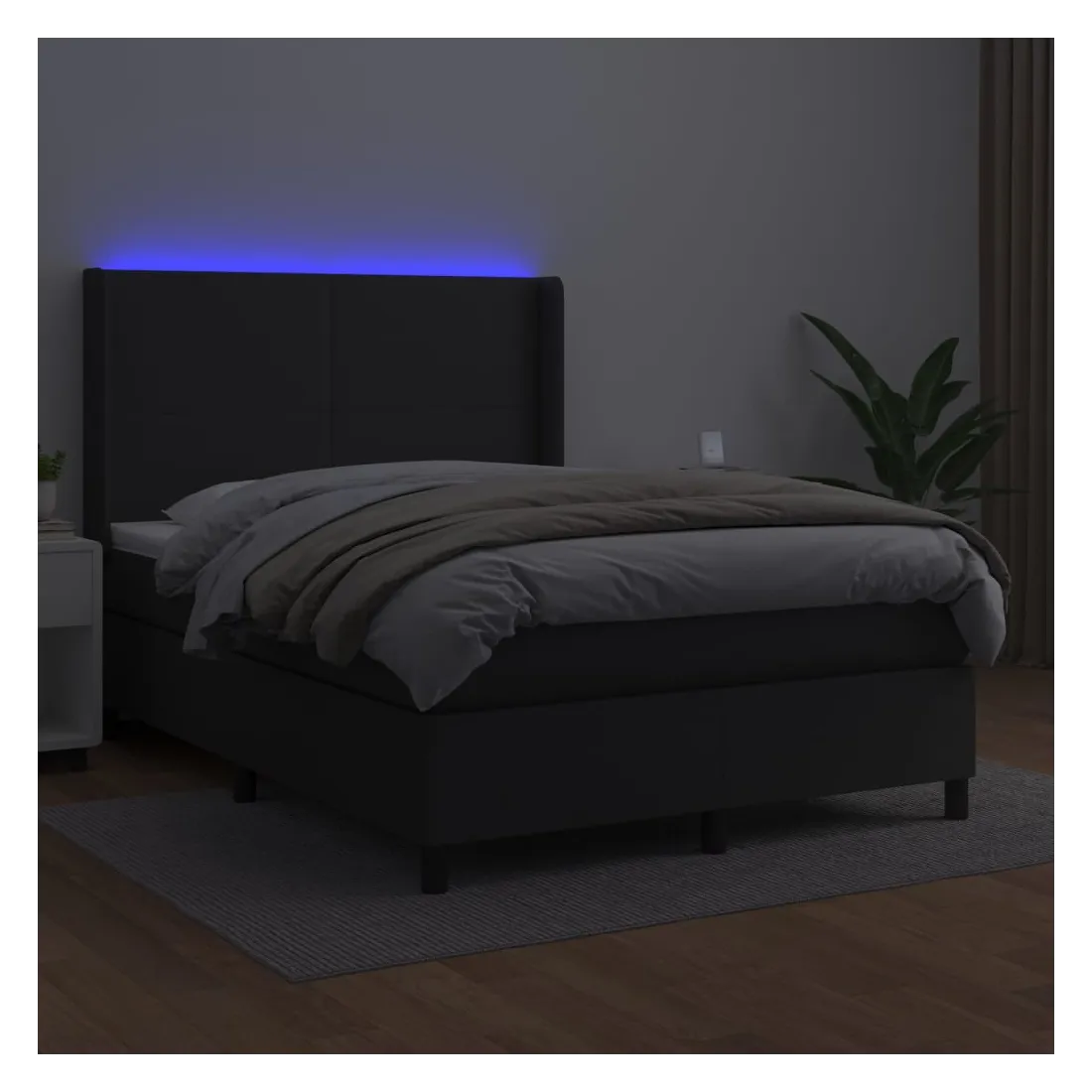 Utilisez ce sommier tapissier avec matelas et LED pour profiter d'un sommeil réparateur ! C'est le point central de votre chambre à coucher. Similicuir durable : le similicuir de qualité supérieure est un matériau très durable. Il est résistant aux taches, ce qui le rend facile à nettoyer avec un chiffon humide. La surface lisse donne également un aspect luxueux et la beauté du cuir véritable.Tête de lit pratique : la tête de lit est réglable en hauteur selon vos préférences. La tête de lit vous offre un excellent soutien du dos lorsque vous êtes assis dans votre lit pour lire ou regarder la télévision.Bande LED colorée : apportez de l'éclairage dans l'obscurité avec des lumières LED colorées !Matelas à ressorts ensachés : le ressort ensaché individuel intégré est connu pour sa très haute qualité tout en assurant un haut niveau de durabilité et d'adaptabilité. Il peut absorber efficacement le bruit et les chocs causés par les sauts et les rotations.Protège-matelas doux pour la peau : le protège-matelas est recouvert d'un tissu résistant et doux pour la peau, ce qui le rend souple et confortable. Remarque :Pour des raisons d'hygiène, le matelas ne peut pas être retourné si l'emballage est retiré ou ouvert.Seule la partie avec un symbole de ciseaux peut être coupée et seule la partie avec l'USB continuera à fonctionner comme avant.Chaque produit est livré avec un manuel de montage dans la boîte pour un montage facile.Ce produit est doté d'un connecteur USB, mais la source d'alimentation certifiée de USB 5V n'est pas incluse.
