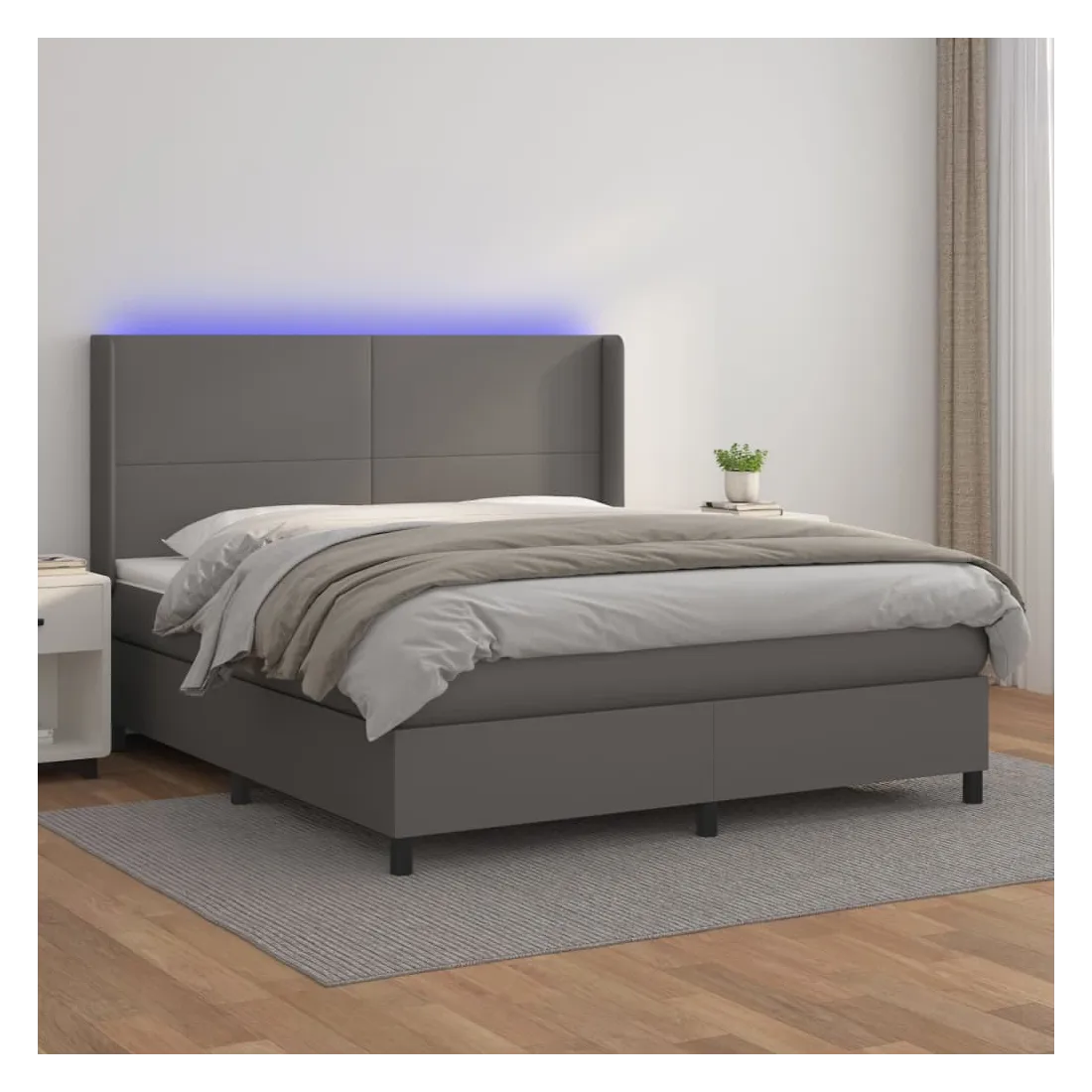 Utilisez ce sommier tapissier avec matelas et LED pour profiter d'un sommeil réparateur ! C'est le point central de votre chambre à coucher. Similicuir durable : le similicuir de qualité supérieure est un matériau très durable. Il est résistant aux taches, ce qui le rend facile à nettoyer avec un chiffon humide. La surface lisse donne également un aspect luxueux et la beauté du cuir véritable. Tête de lit pratique : la tête de lit est réglable en hauteur selon vos préférences. La tête de lit vous offre un excellent soutien du dos lorsque vous êtes assis dans votre lit pour lire ou regarder la télévision. Bande LED colorée : apportez de l'éclairage dans l'obscurité avec des lumières LED colorées ! Matelas à ressorts ensachés : le ressort ensaché individuel intégré est connu pour sa très