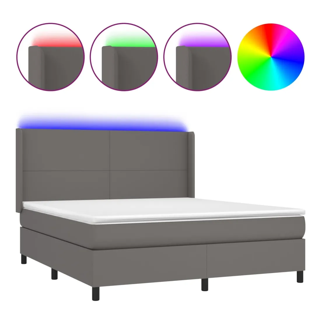 Utilisez ce sommier tapissier avec matelas et LED pour profiter d'un sommeil réparateur ! C'est le point central de votre chambre à coucher. Similicuir durable : le similicuir de qualité supérieure est un matériau très durable. Il est résistant aux taches, ce qui le rend facile à nettoyer avec un chiffon humide. La surface lisse donne également un aspect luxueux et la beauté du cuir véritable.Tête de lit pratique : la tête de lit est réglable en hauteur selon vos préférences. La tête de lit vous offre un excellent soutien du dos lorsque vous êtes assis dans votre lit pour lire ou regarder la télévision.Bande LED colorée : apportez de l'éclairage dans l'obscurité avec des lumières LED colorées !Matelas à ressorts ensachés : le ressort ensaché individuel intégré est connu pour sa très haute qualité tout en assurant un haut niveau de durabilité et d'adaptabilité. Il peut absorber efficacement le bruit et les chocs causés par les sauts et les rotations.Protège-matelas doux pour la peau : le protège-matelas est recouvert d'un tissu résistant et doux pour la peau, ce qui le rend souple et confortable. Remarque :Pour des raisons d'hygiène, le matelas ne peut pas être retourné si l'emballage est retiré ou ouvert.Seule la partie avec un symbole de ciseaux peut être coupée et seule la partie avec l'USB continuera à fonctionner comme avant.Chaque produit est livré avec un manuel de montage dans la boîte pour un montage facile.Ce produit est doté d'un connecteur USB, mais la source d'alimentation certifiée de USB 5V n'est pas incluse.