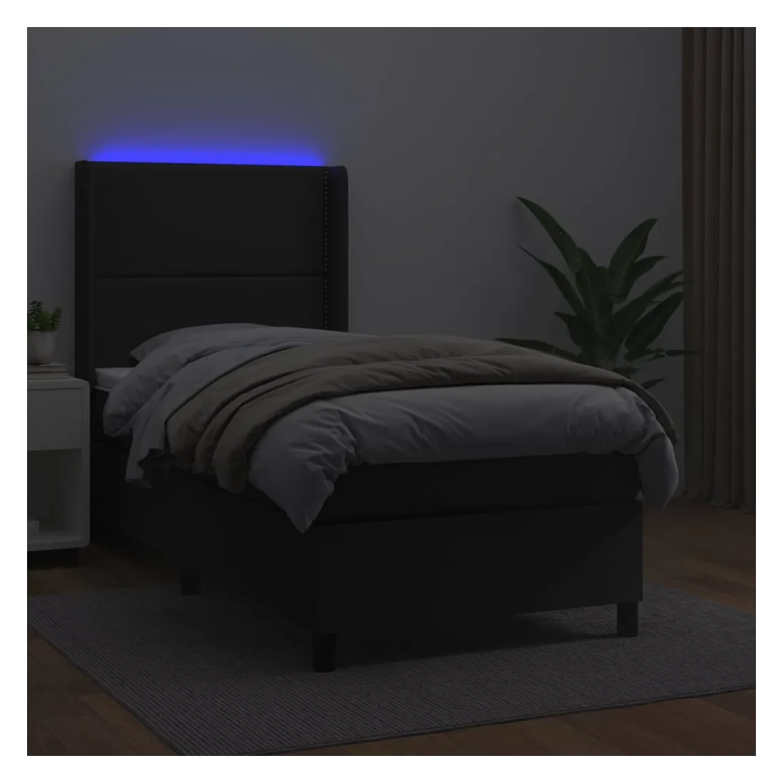 Utilisez ce sommier tapissier avec matelas et LED pour profiter d'un sommeil réparateur ! C'est le point central de votre chambre à coucher. Similicuir durable : le similicuir de qualité supérieure est un matériau très durable. Il est résistant aux taches, ce qui le rend facile à nettoyer avec un chiffon humide. La surface lisse donne également un aspect luxueux et la beauté du cuir véritable.Tête de lit pratique : la tête de lit est réglable en hauteur selon vos préférences. La tête de lit vous offre un excellent soutien du dos lorsque vous êtes assis dans votre lit pour lire ou regarder la télévision.Bande LED colorée : apportez de l'éclairage dans l'obscurité avec des lumières LED colorées !Matelas à ressorts ensachés : le ressort ensaché individuel intégré est connu pour sa très haute qualité tout en assurant un haut niveau de durabilité et d'adaptabilité. Il peut absorber efficacement le bruit et les chocs causés par les sauts et les rotations.Protège-matelas doux pour la peau : le protège-matelas est recouvert d'un tissu résistant et doux pour la peau, ce qui le rend souple et confortable. Remarque :Pour des raisons d'hygiène, le matelas ne peut pas être retourné si l'emballage est retiré ou ouvert.Seule la partie avec un symbole de ciseaux peut être coupée et seule la partie avec l'USB continuera à fonctionner comme avant.Chaque produit est livré avec un manuel de montage dans la boîte pour un montage facile.Ce produit est doté d'un connecteur USB, mais la source d'alimentation certifiée de USB 5V n'est pas incluse.