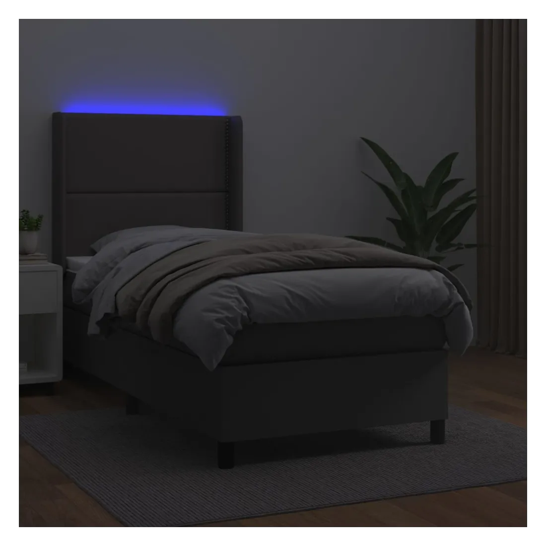 Utilisez ce sommier tapissier avec matelas et LED pour profiter d'un sommeil réparateur ! C'est le point central de votre chambre à coucher. Similicuir durable : le similicuir de qualité supérieure est un matériau très durable. Il est résistant aux taches, ce qui le rend facile à nettoyer avec un chiffon humide. La surface lisse donne également un aspect luxueux et la beauté du cuir véritable.Tête de lit pratique : la tête de lit est réglable en hauteur selon vos préférences. La tête de lit vous offre un excellent soutien du dos lorsque vous êtes assis dans votre lit pour lire ou regarder la télévision.Bande LED colorée : apportez de l'éclairage dans l'obscurité avec des lumières LED colorées !Matelas à ressorts ensachés : le ressort ensaché individuel intégré est connu pour sa très haute qualité tout en assurant un haut niveau de durabilité et d'adaptabilité. Il peut absorber efficacement le bruit et les chocs causés par les sauts et les rotations.Protège-matelas doux pour la peau : le protège-matelas est recouvert d'un tissu résistant et doux pour la peau, ce qui le rend souple et confortable. Remarque :Pour des raisons d'hygiène, le matelas ne peut pas être retourné si l'emballage est retiré ou ouvert.Seule la partie avec un symbole de ciseaux peut être coupée et seule la partie avec l'USB continuera à fonctionner comme avant.Chaque produit est livré avec un manuel de montage dans la boîte pour un montage facile.Ce produit est doté d'un connecteur USB, mais la source d'alimentation certifiée de USB 5V n'est pas incluse.