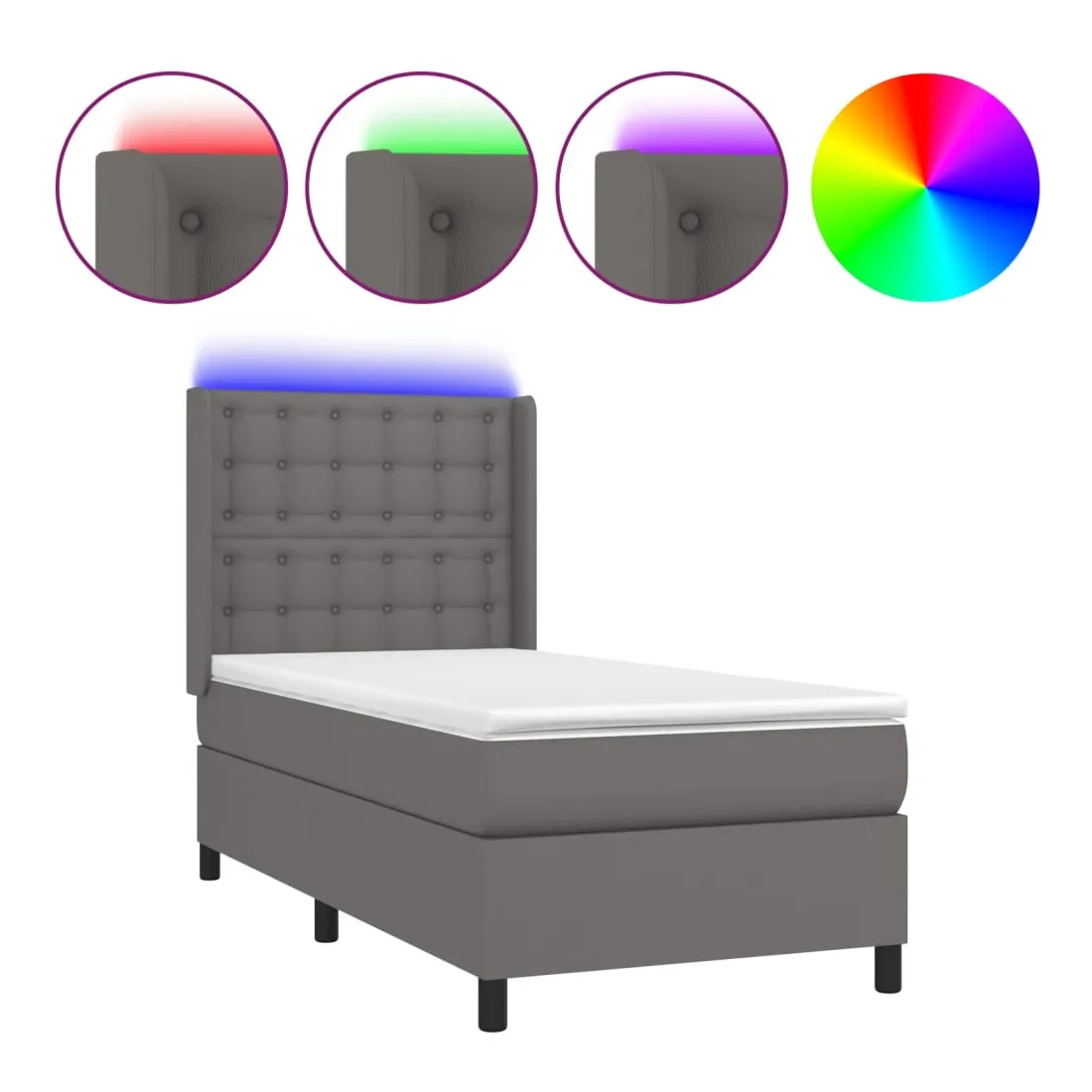 Sommier à lattes de lit matelas LED Gris 90x190 cm Similicuir