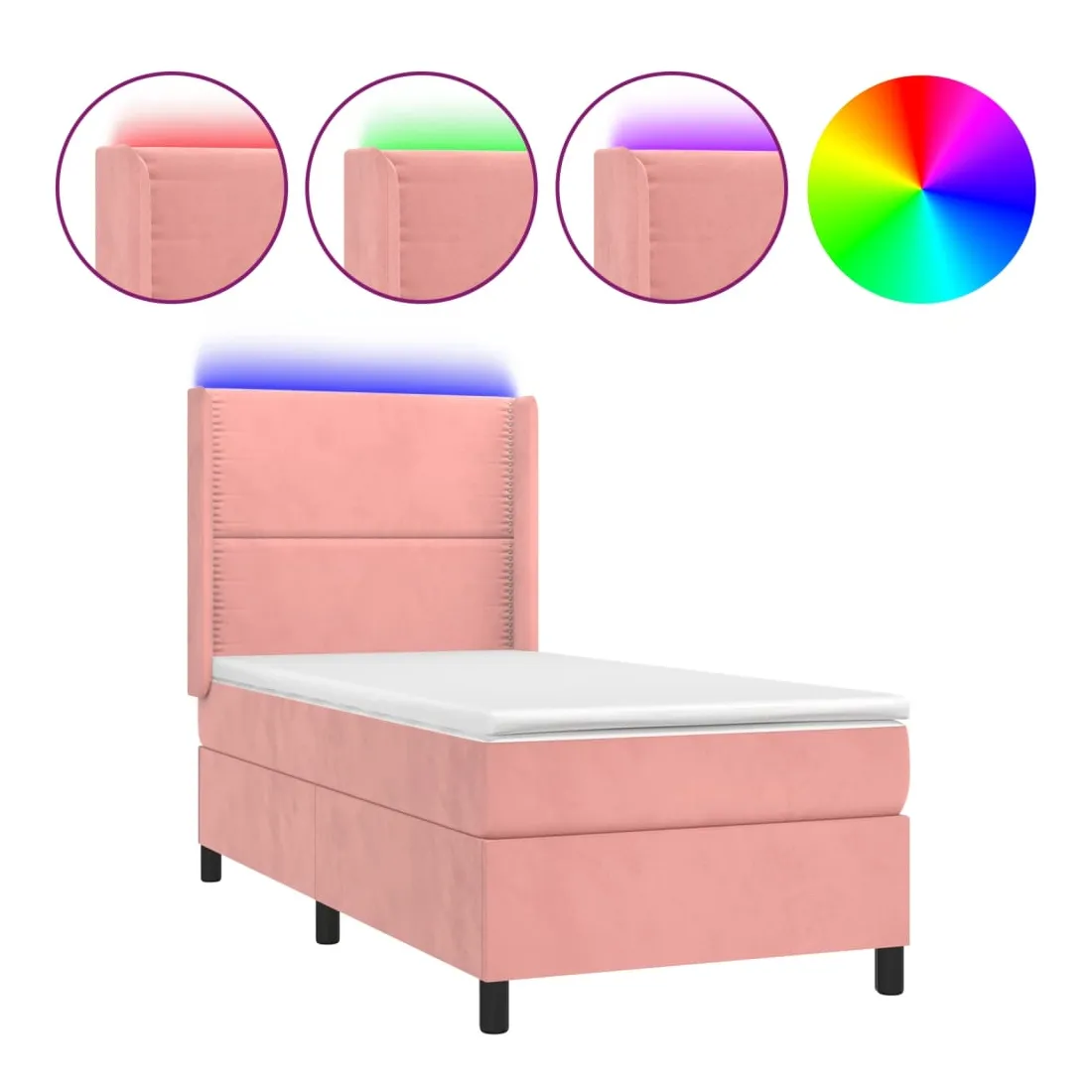 Sommier à lattes de lit matelas et LED Rose 90x190 cm Velours
