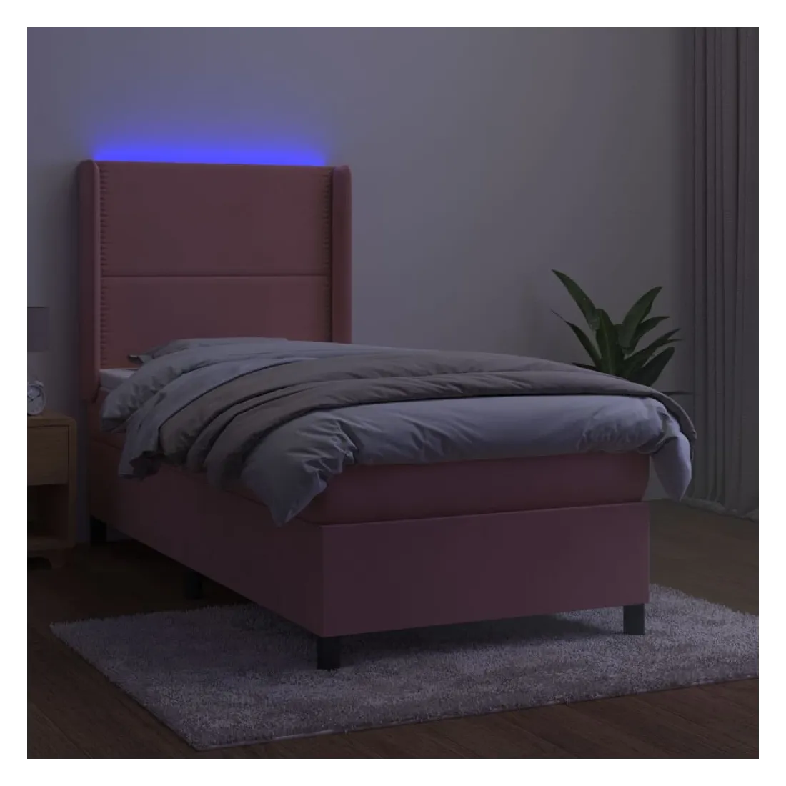 Utilisez ce sommier tapissier avec matelas et LED pour profiter d'un sommeil réparateur ! C'est le point central de votre chambre à coucher. Velours doux : le velours est un tissu doux et luxueux qui se reconnaît à son tas dense de fibres uniformément coupées qui ont une touche lisse. Le tissu en velours présente un toucher doux distinctif, ce qui le rend confortable au toucher.Tête de lit pratique : la tête de lit est réglable en hauteur selon vos préférences. La tête de lit vous offre un excellent soutien du dos lorsque vous êtes assis dans votre lit pour lire ou regarder la télévision.Bande LED colorée : apportez de l'éclairage dans l'obscurité avec des lumières LED colorées !Matelas à ressorts ensachés : le ressort ensaché individuel intégré est connu pour sa très haute qualité tout en assurant un haut niveau de durabilité et d'adaptabilité. Il peut absorber efficacement le bruit et les chocs causés par les sauts et les rotations.Protège-matelas doux pour la peau : le protège-matelas est recouvert d'un tissu résistant et doux pour la peau, ce qui le rend souple et confortable. Remarque :Pour des raisons d'hygiène, le matelas ne peut pas être retourné si l'emballage est retiré ou ouvert.Seule la partie avec un symbole de ciseaux peut être coupée et seule la partie avec l'USB continuera à fonctionner comme avant.Chaque produit est livré avec un manuel de montage dans la boîte pour un montage facile.Ce produit est doté d'un connecteur USB, mais la source d'alimentation certifiée de USB 5V n'est pas incluse.