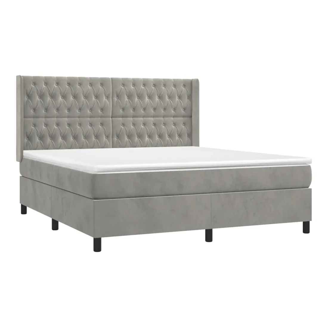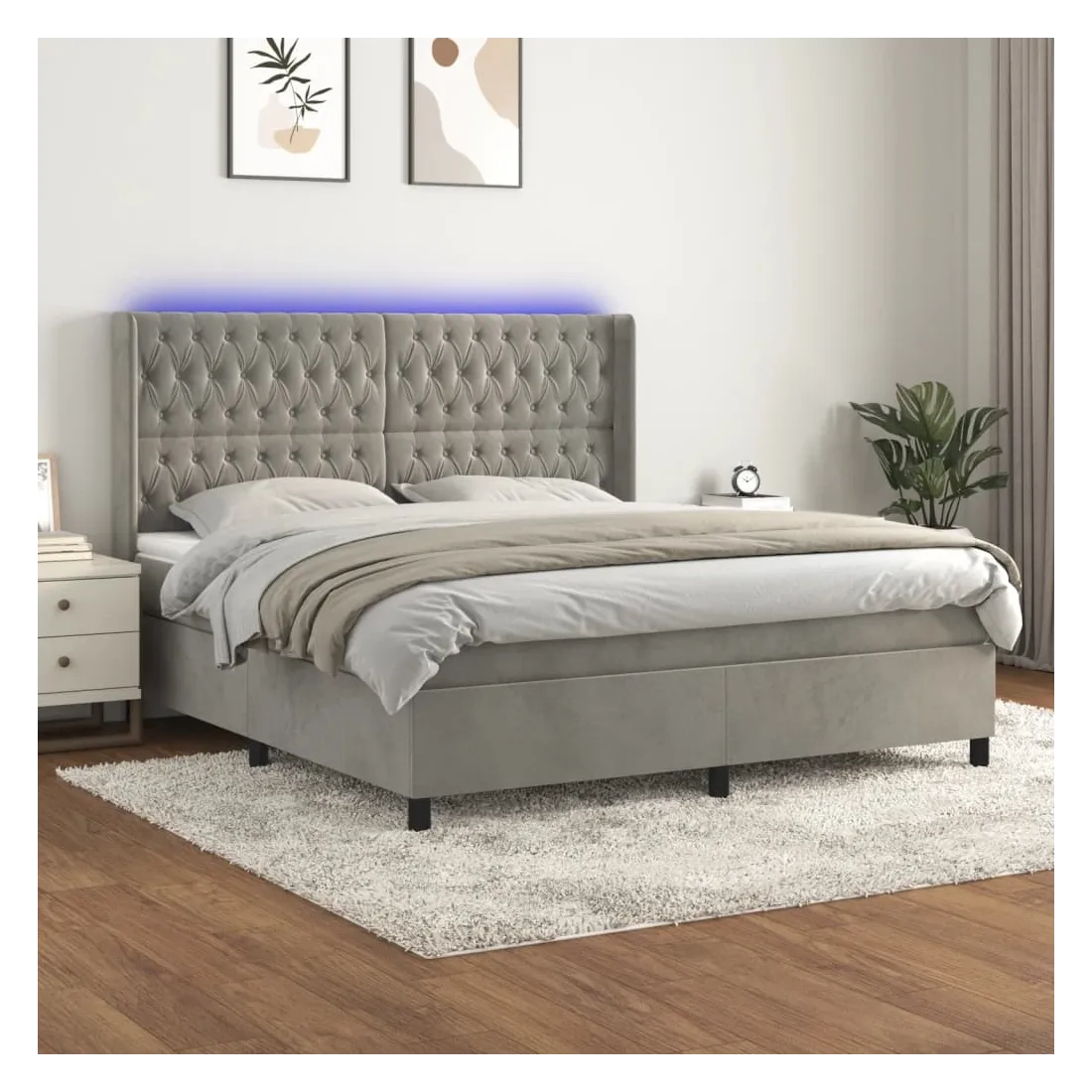 Utilisez ce sommier tapissier avec matelas et LED pour profiter d'un sommeil réparateur ! C'est le point central de votre chambre à coucher. Velours doux : le velours est un tissu doux et luxueux qui se reconnaît à son tas dense de fibres uniformément coupées qui ont une touche lisse. Le tissu en velours présente un toucher doux distinctif, ce qui le rend confortable au toucher.Tête de lit pratique : la tête de lit est réglable en hauteur selon vos préférences. La tête de lit vous offre un excellent soutien du dos lorsque vous êtes assis dans votre lit pour lire ou regarder la télévision.Bande LED colorée : apportez de l'éclairage dans l'obscurité avec des lumières LED colorées !Matelas à ressorts ensachés : le ressort ensaché individuel intégré est connu pour sa très haute qualité tout en assurant un haut niveau de durabilité et d'adaptabilité. Il peut absorber efficacement le bruit et les chocs causés par les sauts et les rotations.Protège-matelas doux pour la peau : le protège-matelas est recouvert d'un tissu résistant et doux pour la peau, ce qui le rend souple et confortable. Remarque :Pour des raisons d'hygiène, le matelas ne peut pas être retourné si l'emballage est retiré ou ouvert.Seule la partie avec un symbole de ciseaux peut être coupée et seule la partie avec l'USB continuera à fonctionner comme avant.Chaque produit est livré avec un manuel de montage dans la boîte pour un montage facile.Ce produit est doté d'un connecteur USB, mais la source d'alimentation certifiée de USB 5V n'est pas incluse.
