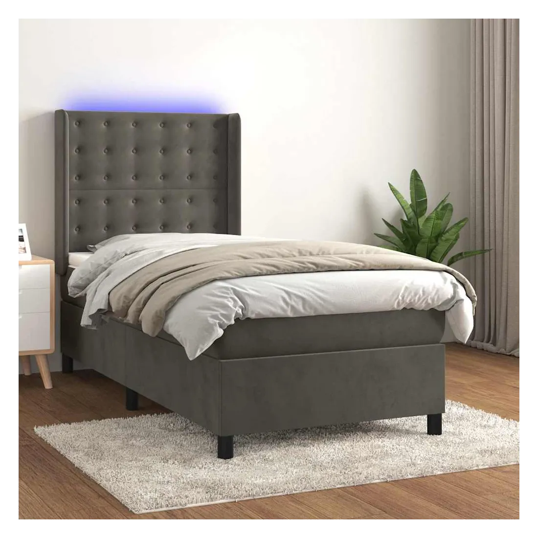 Sommier à lattes de lit matelas LED Gris foncé 80x200cm Velours