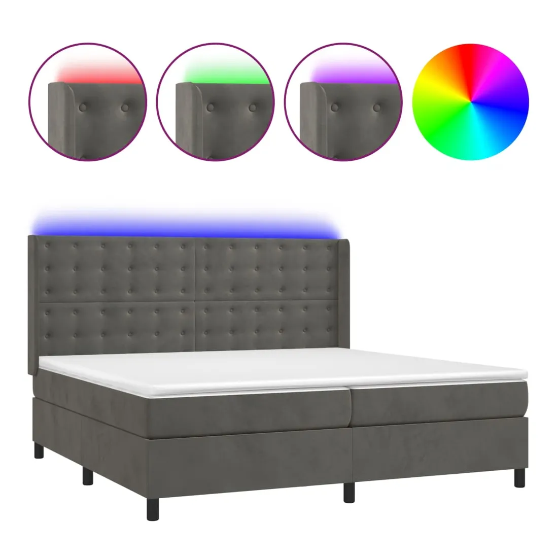 Sommier à lattes de lit matelas et LED Gris foncé 200x200 cm