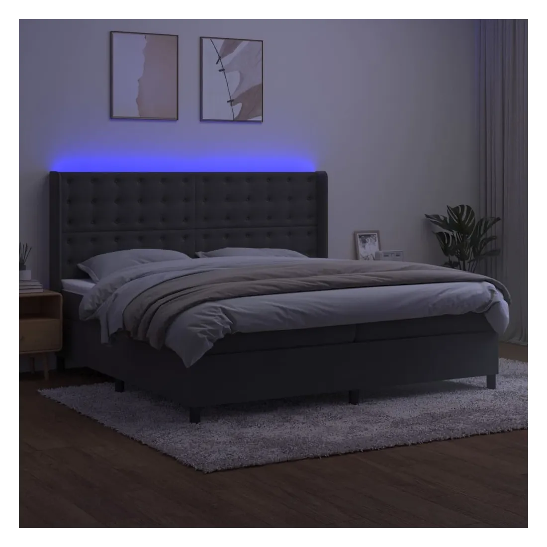 Utilisez ce sommier tapissier avec matelas et LED pour profiter d'un sommeil réparateur ! C'est le point central de votre chambre à coucher. Velours doux : le velours est un tissu doux et luxueux qui se reconnaît à son tas dense de fibres uniformément coupées qui ont une touche lisse. Le tissu en velours présente un toucher doux distinctif, ce qui le rend confortable au toucher.Tête de lit pratique : la tête de lit est réglable en hauteur selon vos préférences. La tête de lit vous offre un excellent soutien du dos lorsque vous êtes assis dans votre lit pour lire ou regarder la télévision.Bande LED colorée : apportez de l'éclairage dans l'obscurité avec des lumières LED colorées !Matelas à ressorts ensachés : le ressort ensaché individuel intégré est connu pour sa très haute qualité tout en assurant un haut niveau de durabilité et d'adaptabilité. Il peut absorber efficacement le bruit et les chocs causés par les sauts et les rotations.Protège-matelas doux pour la peau : le protège-matelas est recouvert d'un tissu résistant et doux pour la peau, ce qui le rend souple et confortable. Remarque :Pour des raisons d'hygiène, le matelas ne peut pas être retourné si l'emballage est retiré ou ouvert.Seule la partie avec un symbole de ciseaux peut être coupée et seule la partie avec l'USB continuera à fonctionner comme avant.Chaque produit est livré avec un manuel de montage dans la boîte pour un montage facile.Ce produit est doté d'un connecteur USB, mais la source d'alimentation certifiée de USB 5V n'est pas incluse.