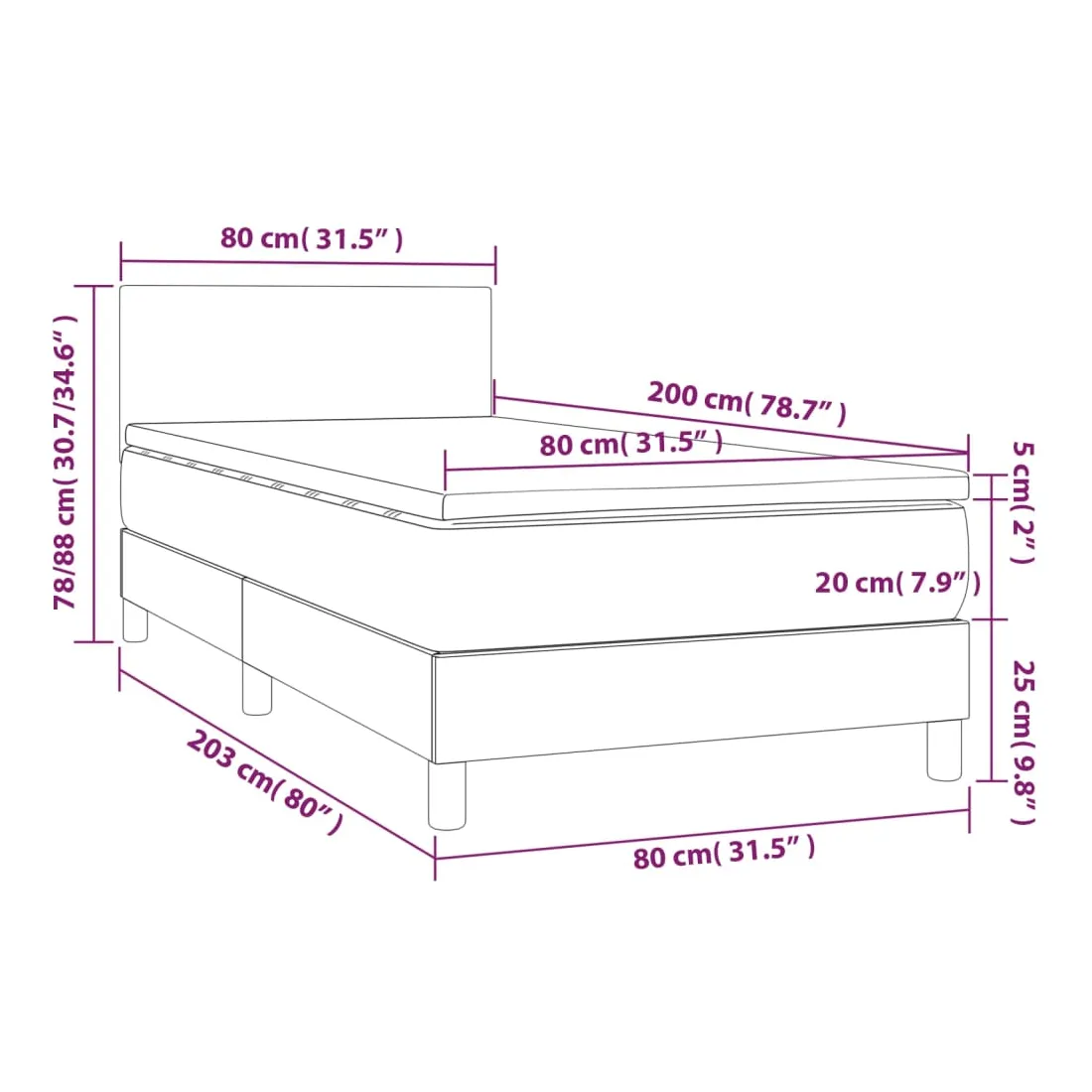 • Dimensions : 80 x 200 x 20 cm (l x L x H)