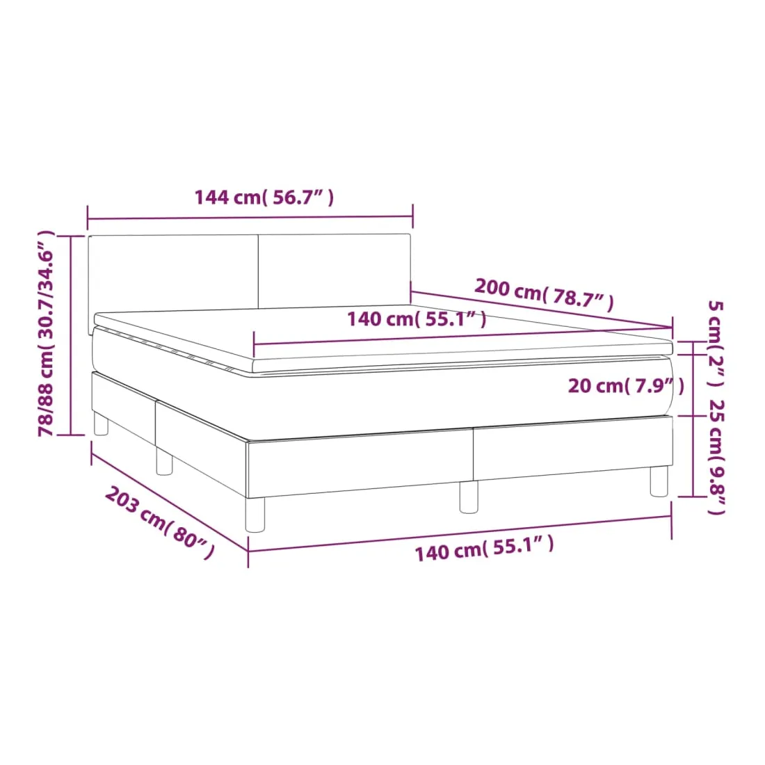 • Dimensions : 140 x 200 x 20 cm (l x L x H)