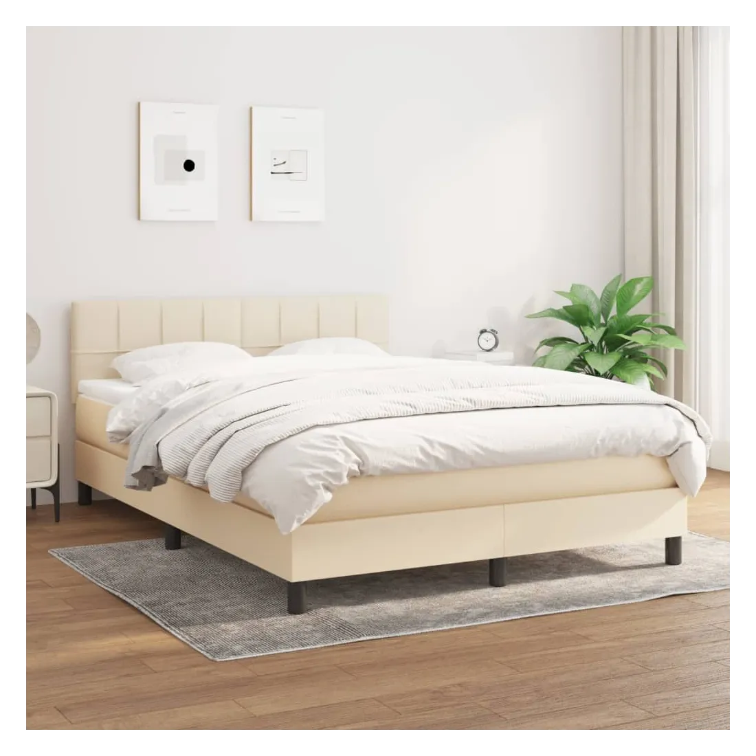 Sommier à lattes de lit avec matelas Crème 140x200 cm Tissu